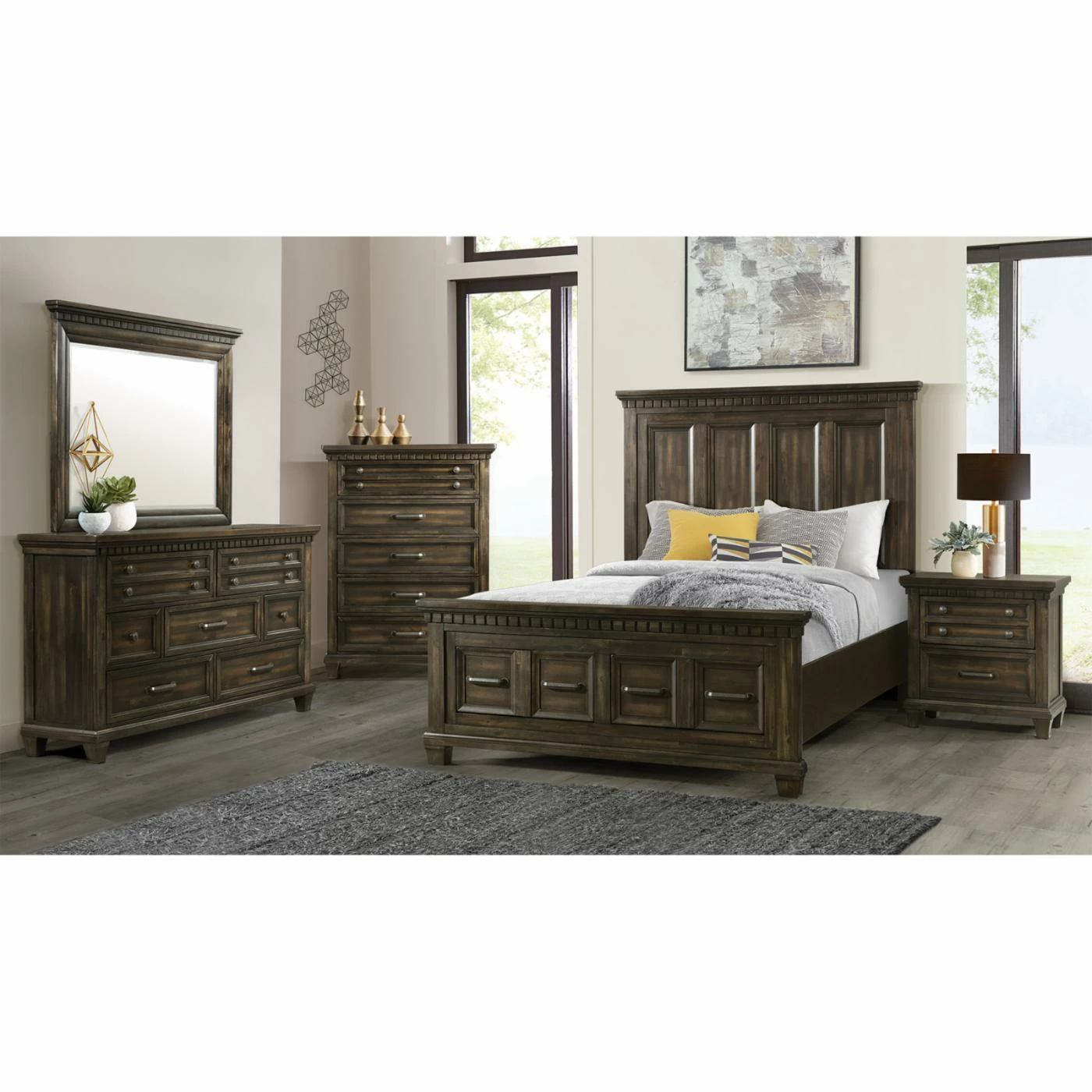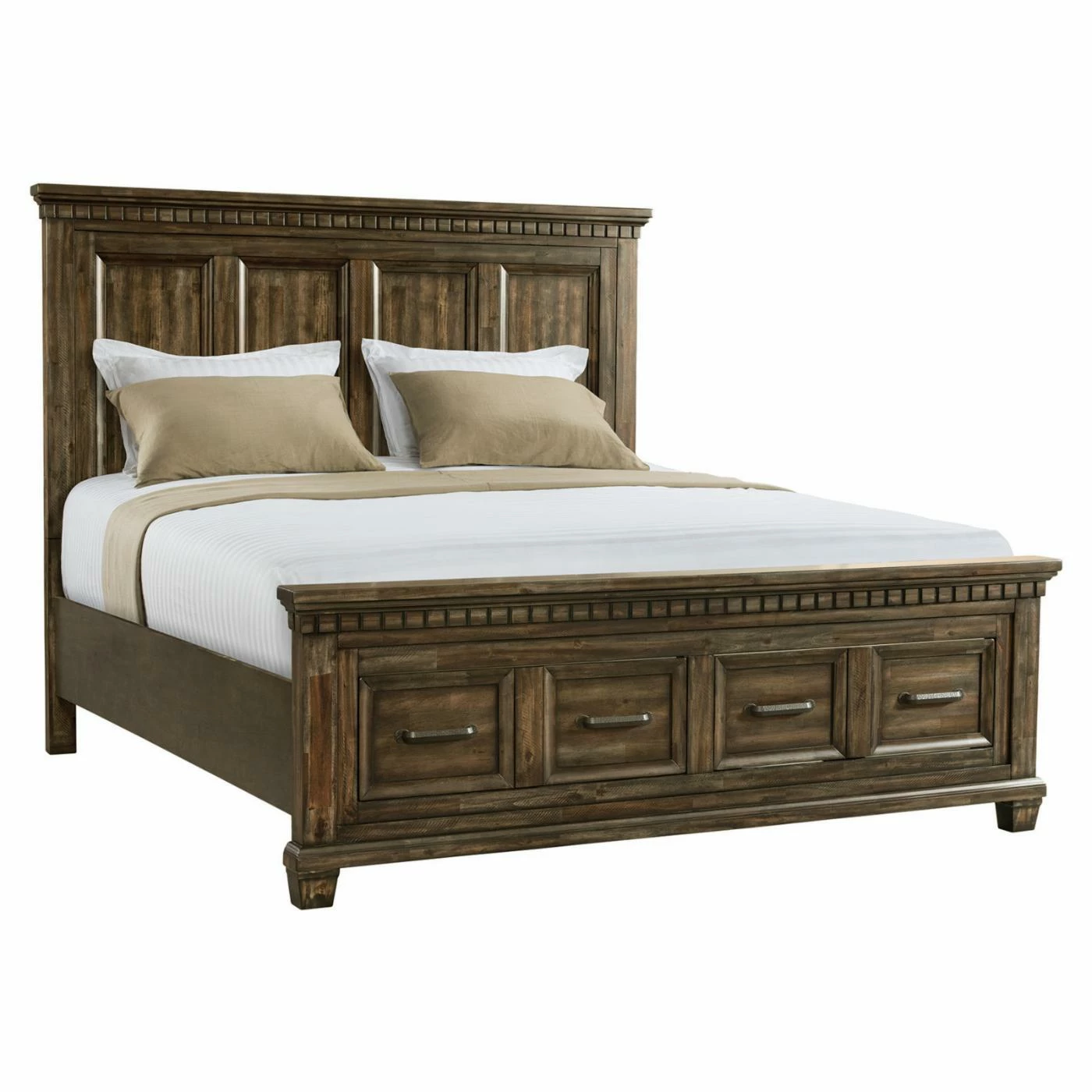 Make the Picket House Furnishings Johnny Platform Storage Bed the centerpiece of your rustic bedroom retreat. Crafted from solid wood, this bed is ruggedly handsome, and it boasts two drawers for tucked away storage. It features a framed headboard with beadboard panel detailing and a matching, low profile footboard. The smoky walnut finish enhances its rustic appeal. Choose from available sizes.