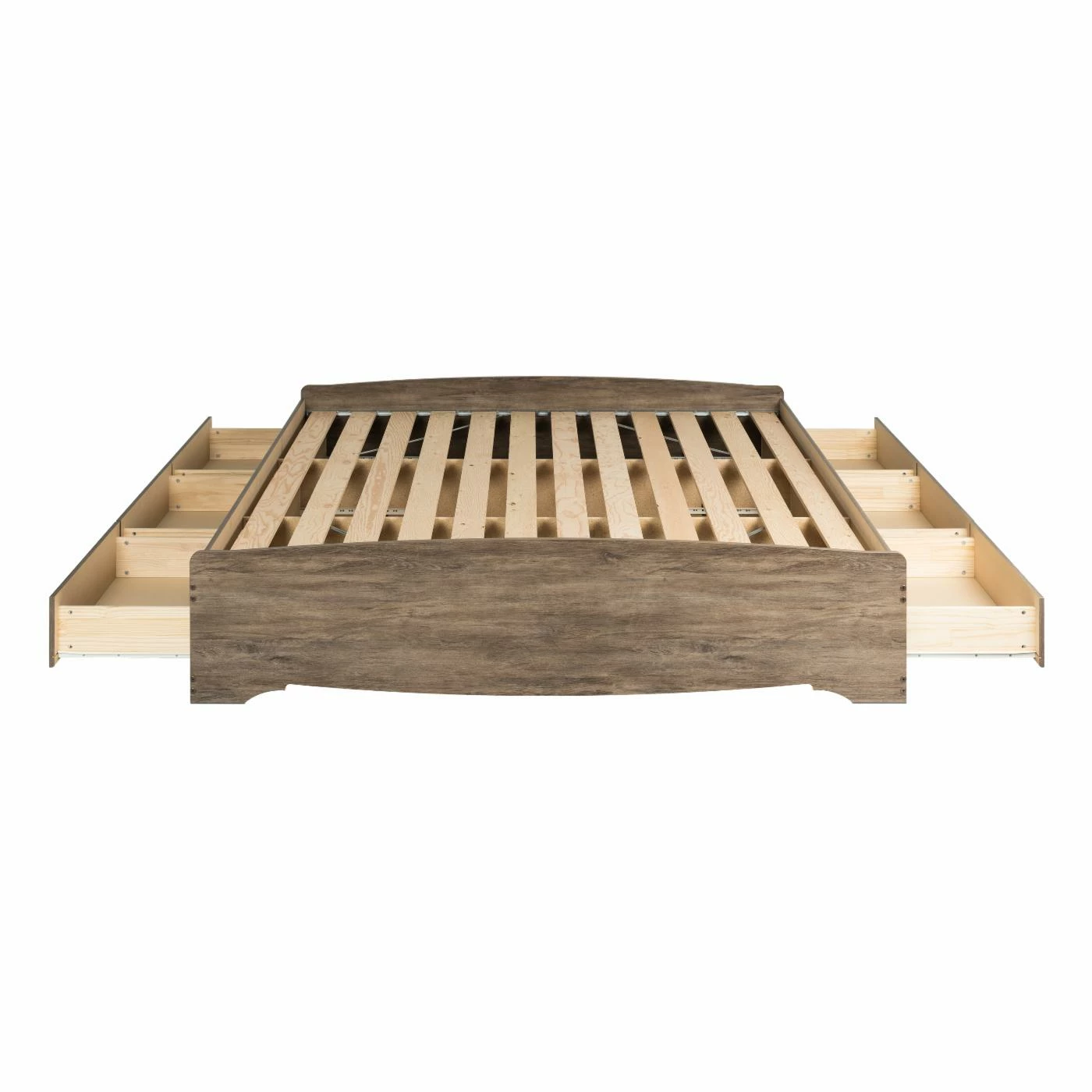 Make your bed the most versatile piece in your bedroom with the Prepac Mates Storage Platform Bed. Store your linens, shoes and other bedroom items in six 18 in. deep drawers (three per side) and take the pressure off your dresser. This mate’s bed will suit any room layout, and doesn’t need a box spring thanks to the slat support system that only requires your mattress. The drifted gray laminate finish adds a rustic touch that will fit any farmhouse or coastal decor scheme. Maximize your bedroom storage, and minimize clutter at the same time.