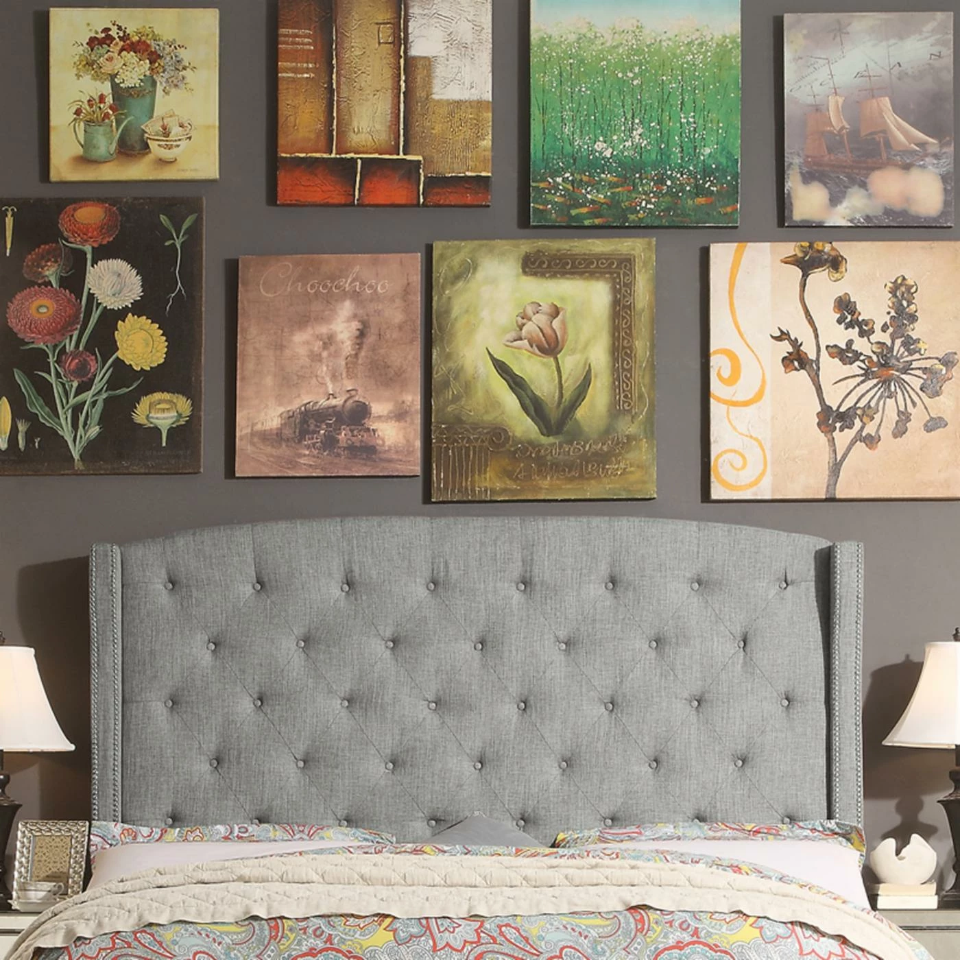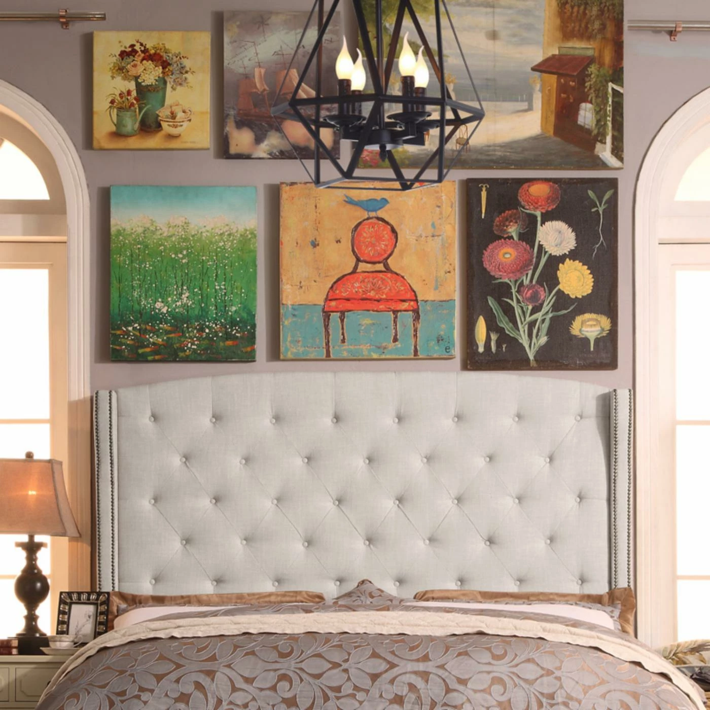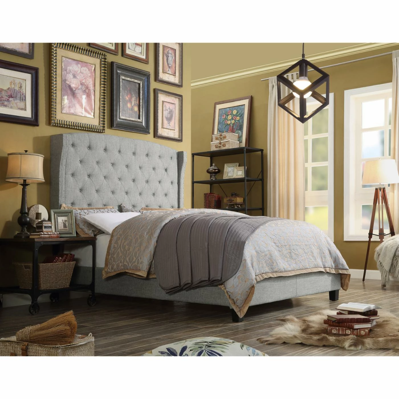 - Nailhead trim on headboard