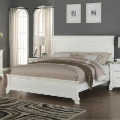 Stately S-shaped feet and sophisticated crown molding make the Roundhill Furniture Laveno Panel Bed an elegant focal point for a traditional bedroom. Both the headboard and footboard show off recessed panel accents, adding to the timeless appeal of the piece. Finished in white lacquer, the durably crafted solid wood bed makes spaces feel clean and bright.