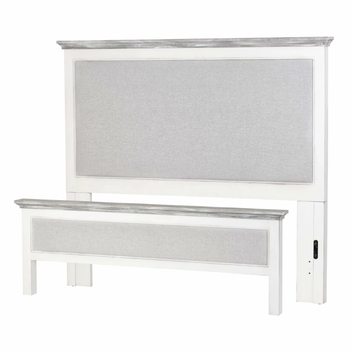 Sail away to slumber in the Sea Winds Captiva Island Panel Bed. This coastal-inspired panel bed is a chic and breezy way to update your bedroom, with or without the other items in the Captiva Island collection. This bed is crafted from sturdy wood, finished in weathered white and a distressed two-tone white and gray wash on the top details. The headboard and footboard both feature an exterior-grade gray fabric for a visually interesting panel detail that can stand up to the hustle and bustle of everyday life. Choose from available sizes to best meet the needs of your bedroom. No box spring required. Some assembly required.