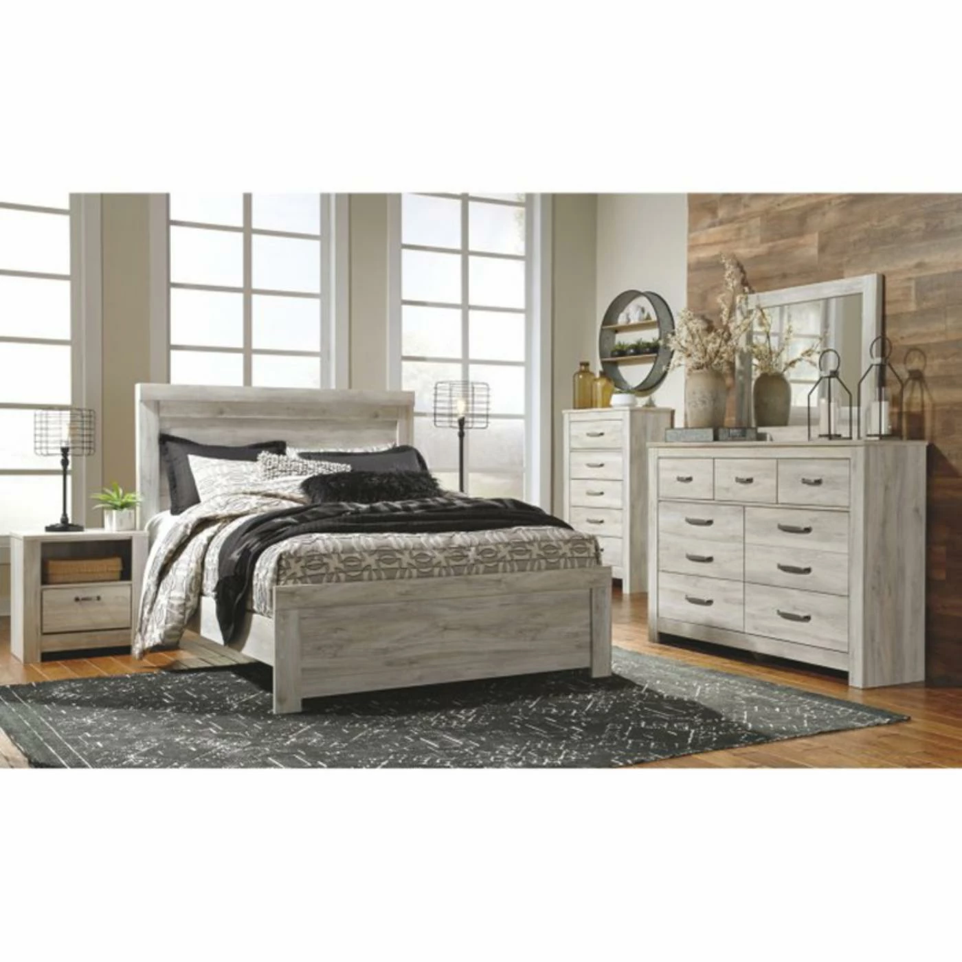 Add rustic style to your bedroom with the Signature Design by Ashley Bellaby Panel Bed. This panel bed is constructed of engineered wood and veneers. It features a replicated oak wood grain under a whitewash finish. Choose from the available sizes to best fit your space. Assembly is required upon delivery.