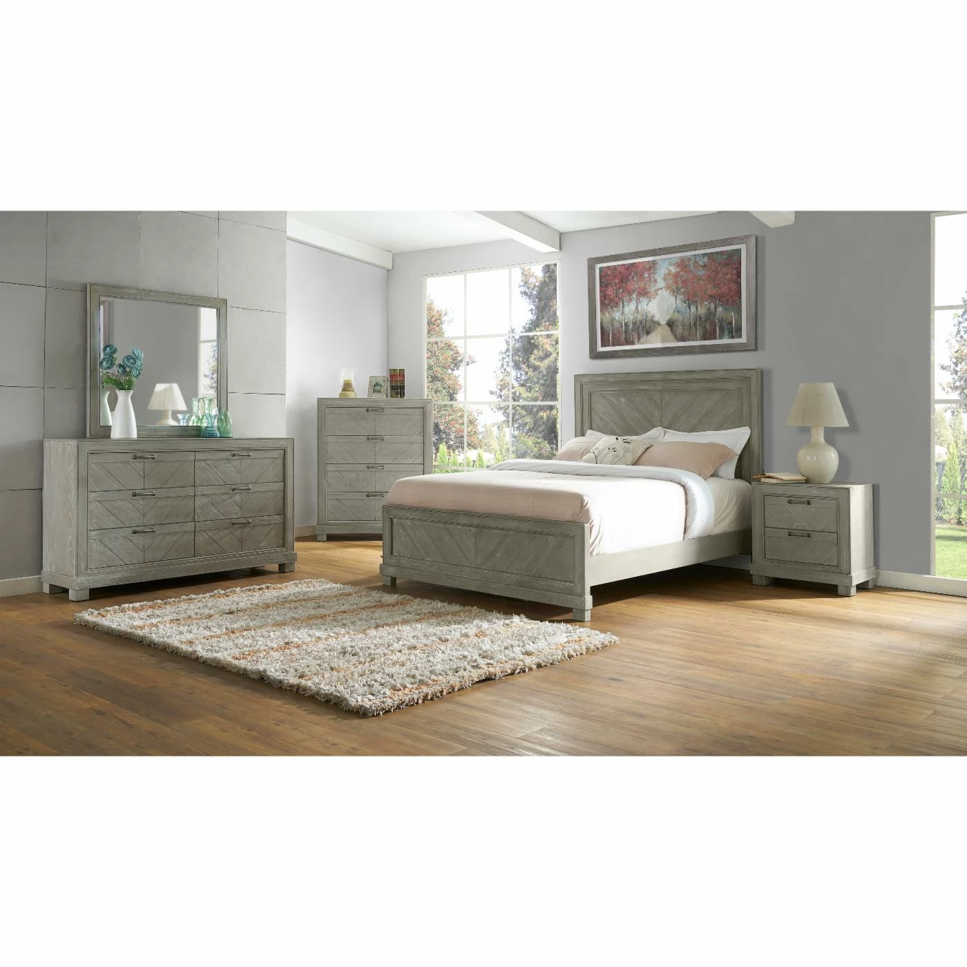 Stately and bold, the Steve Silver Co. Montana Rustic Panel Bed will make an alluring centerpiece for your bedroom. This panel bed features a transitional style that allows it to pair easily with traditional, contemporary, and even cottage dΓ©cor styles. It’s crafted from solid poplar woods and oak veneers so it’s as durable as it is visually arresting. Its veneers boast a dazzling chevron pattern that lends a classic touch to its style. Add your own mattress and box spring to complete its design.