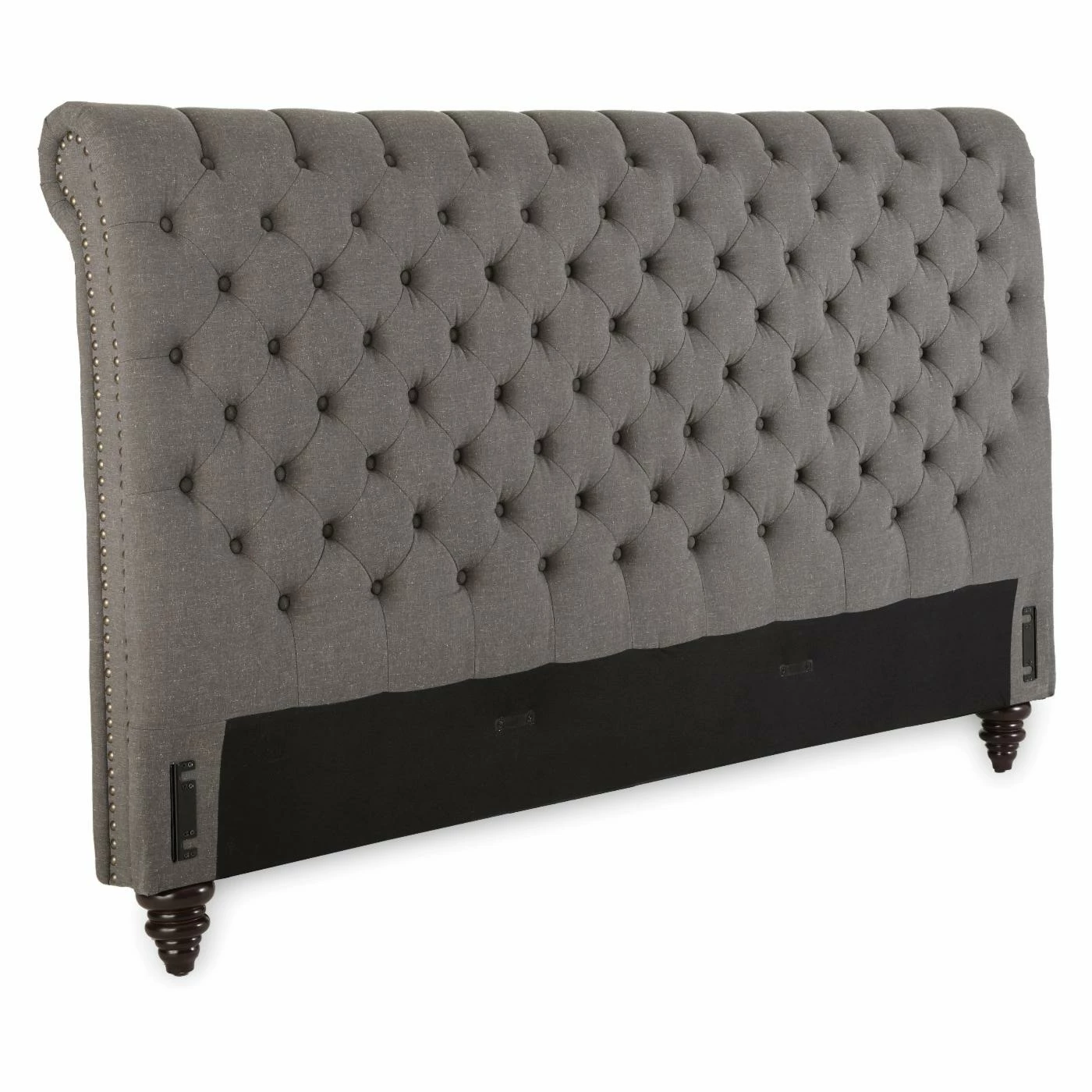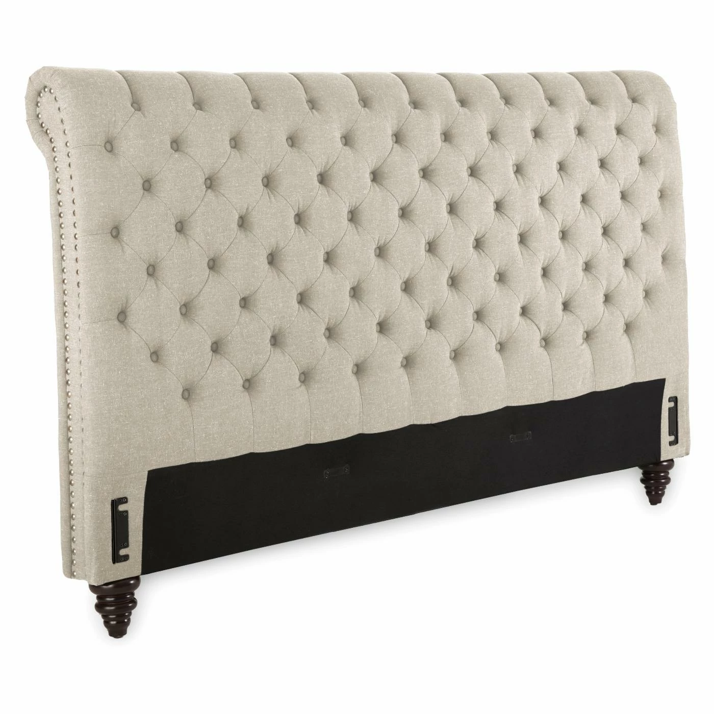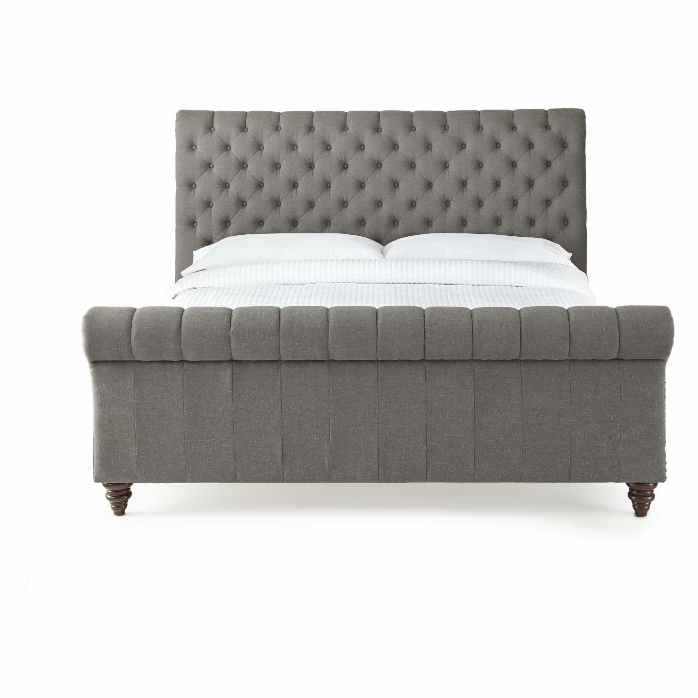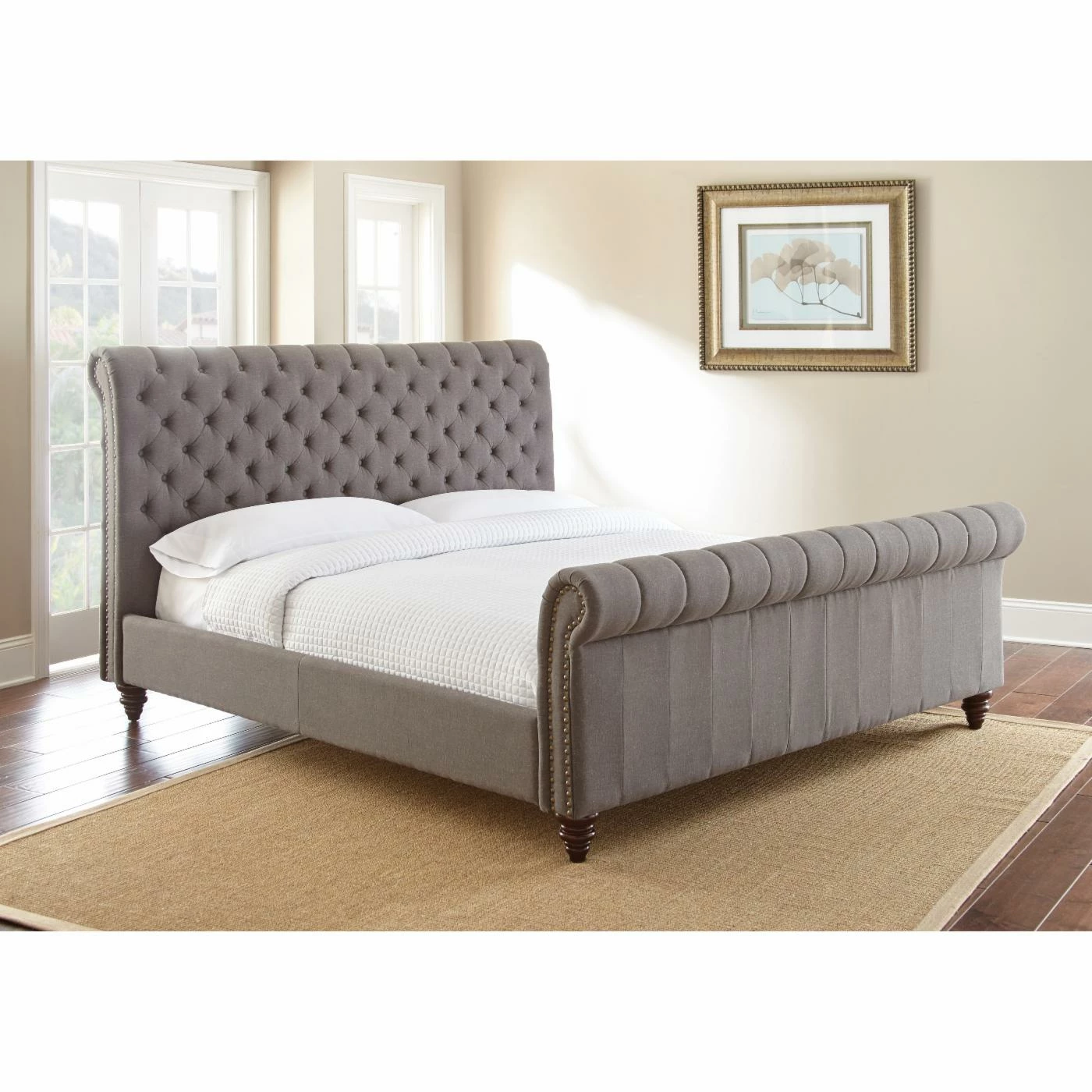 Instantly update your master or guest bedroom with the Steve Silver Co. Swanson Upholstered Sleigh Bed. Solid hardwood constructs the frame, padded with foam and upholstered in your choice of available neutral fabric. Both the headboard and footboard are designed with a rolled surface. Button tufting accents the front of the headboard, while a nailhead trim decorates sides.