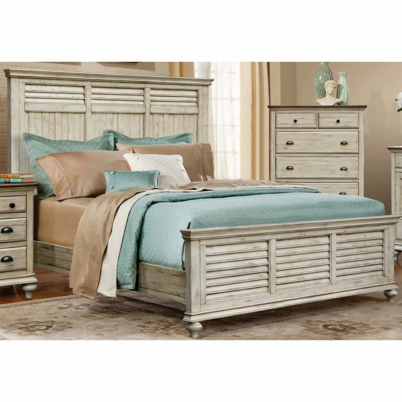Discover the breezy beach style youβve been dreaming of with the Sunset Trading Shades Of Sand Platform Bed. Designed to bring a relaxed resort feel to your bedroom space, this bed is accented with an open-louvered design and graced with an antique white finish thatβs been wire-brushed by hand for an elegant touch of texture. You can choose from available size options to best accommodate your bedroom setting. Crafted from acacia wood and New Zealand pine enhanced with an eight-step finishing process and coated with a smooth layer of protective lacquer, this platform bed is a definitive focal point of the Shades of Sand Collection.