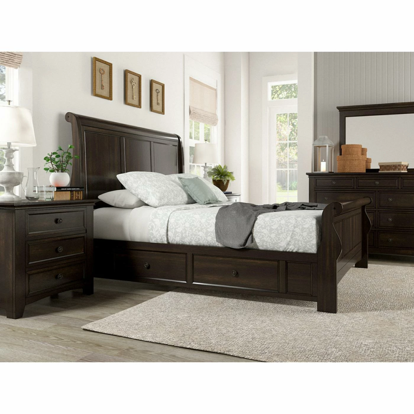 When it’s time to do something new to your bedroom style, the Weston Home Crestler Platform Storage Sleigh Bed is going to give you the good looks and practical function that you need to effect some real change. The sweeping curves of a sleigh bed are found on the tall headboard and matching footboard. This bed is offered in your choice of available storage options, with one- or two-sided storage units that fit neatly beneath the side rails. It’s made from a mix of solid and engineered hardwoods with meranti veneers. The deep paneling adds texture to the headboard, matching rails, and footboard. Choose from the available size and finish options.