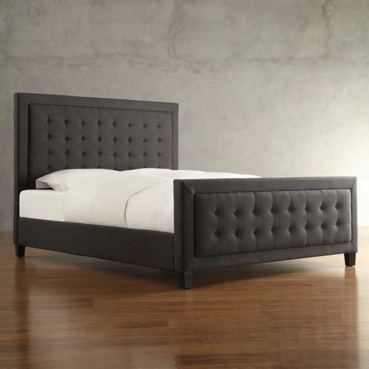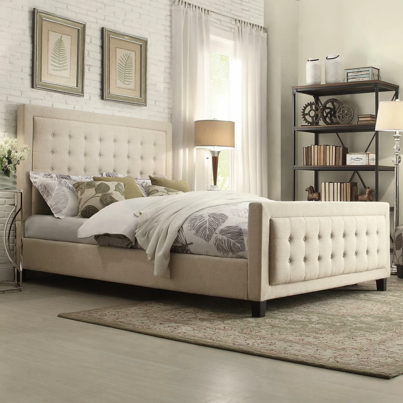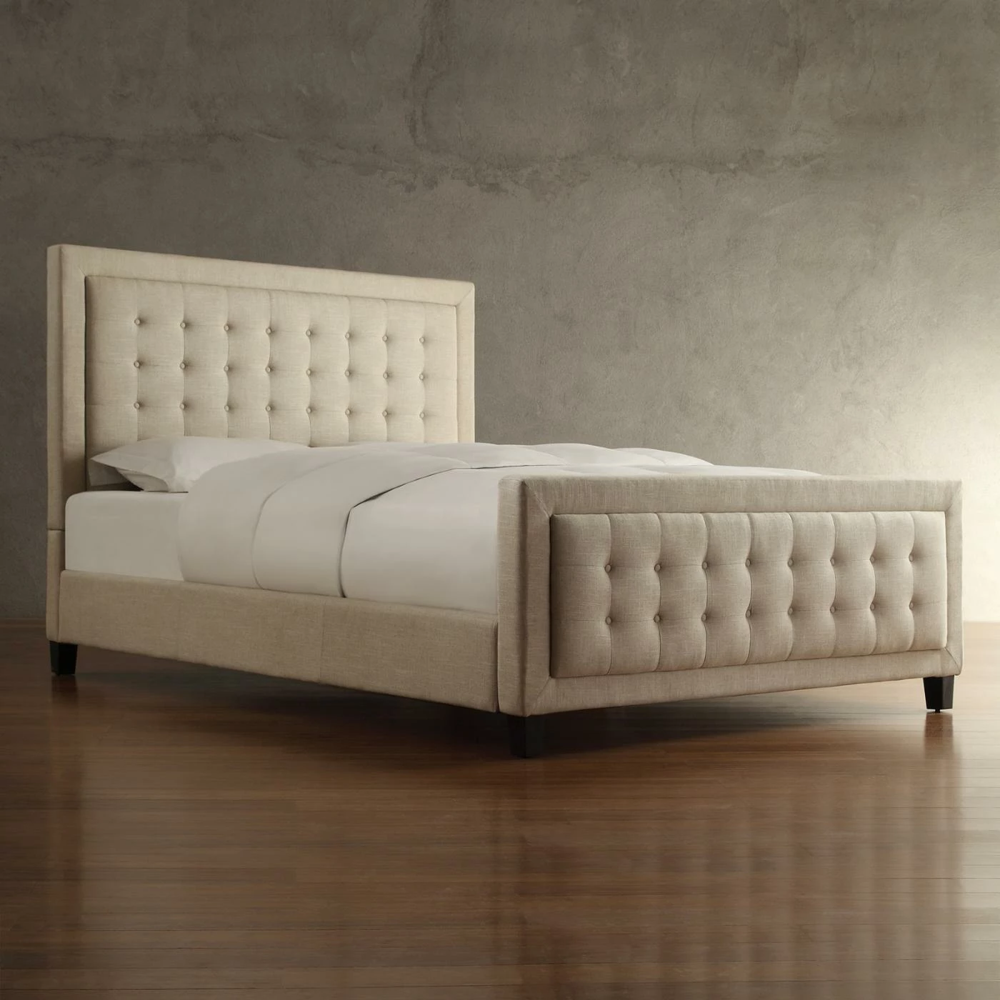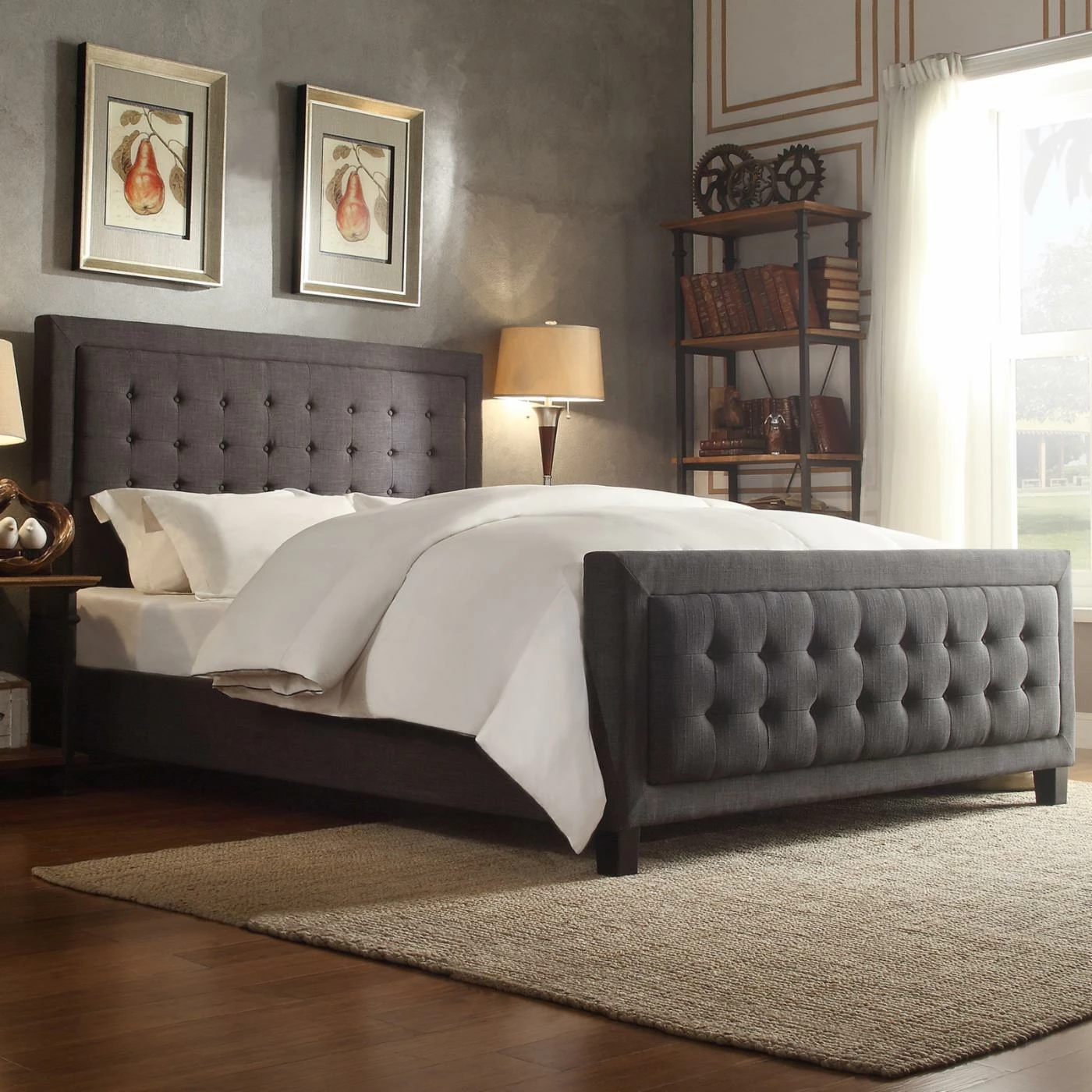 The button-tufted Weston Home Eston Upholstered Platform Bed makes for a fashionable sleep space with impressive scale. This set includes a generously padded headboard, footboard, and side rails. Each piece is constructed from poplar wood solids and dene foam cushion fill wrapped in soft linen fabric upholstery in your choice of color. Some assembly is required and multiple size options are available to accommodate your mattress and box springs.