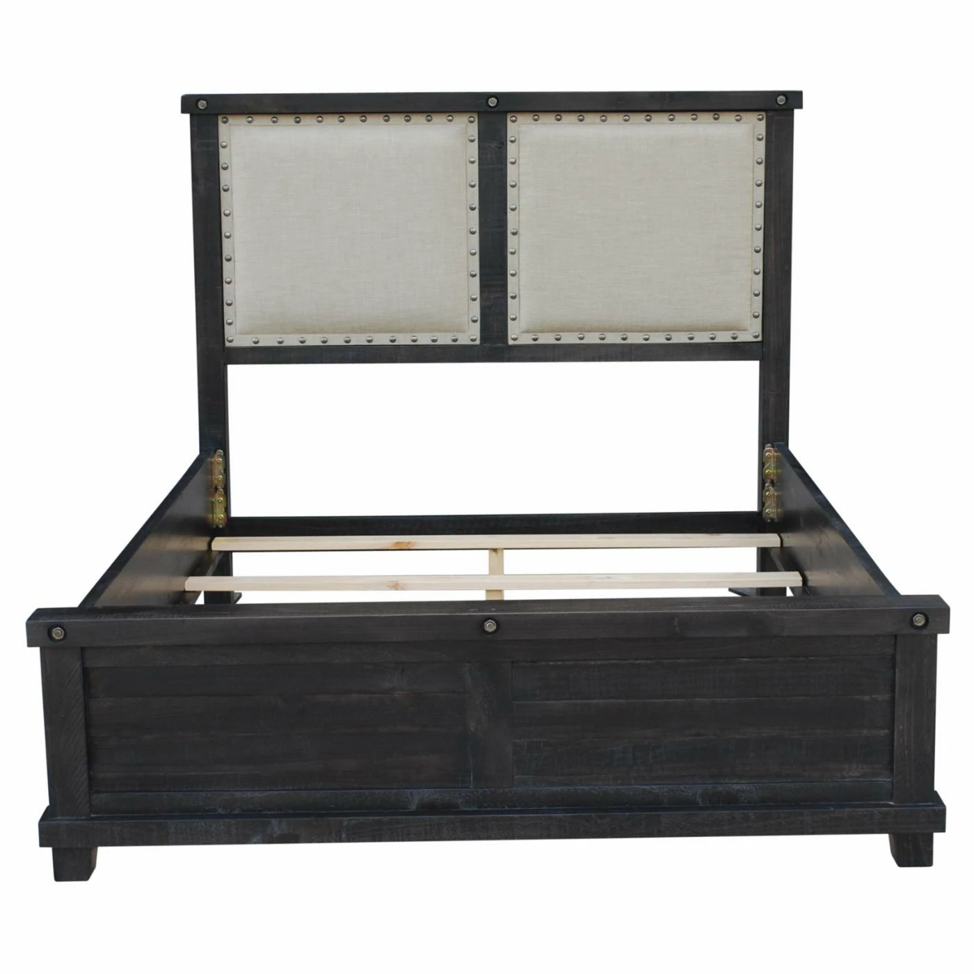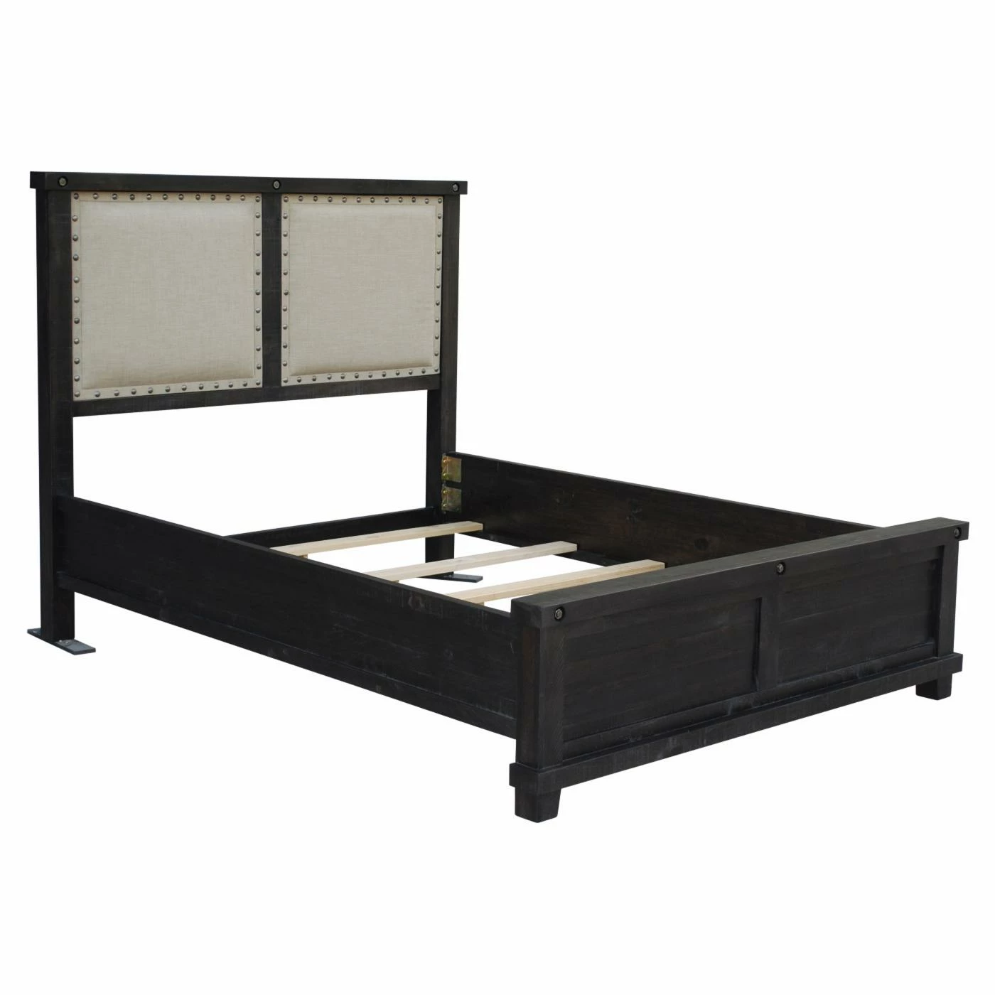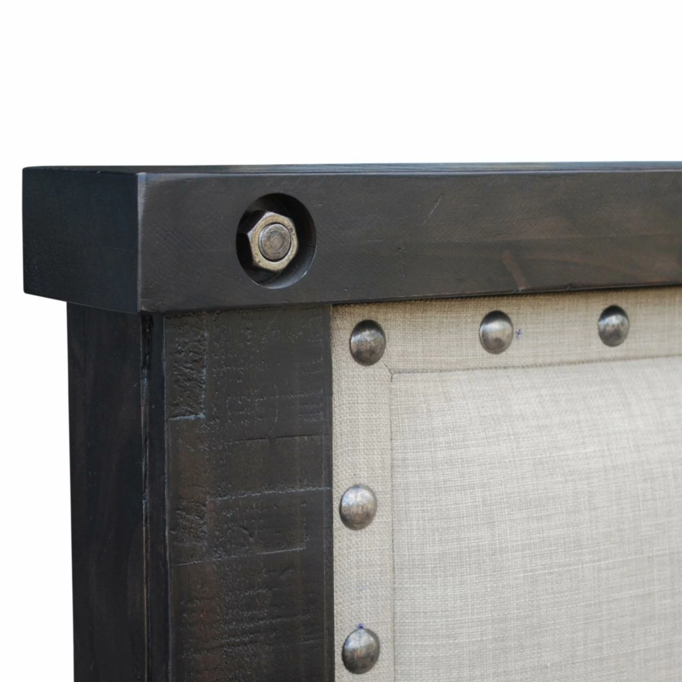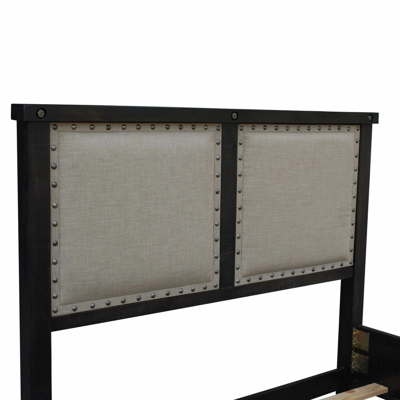 The Yosemite Upholstered Panel Bed β Cafe uncannily replicates the style of turn-of-the-20th century furniture, with hand-hewn solid pine planks featuring natural imperfections and saw marks in a dark rustic finish. The authentic industrial style is elegantly softened with a linen-upholstered headboard, which is cushioned for comfort and accented with hand-hammered nail head trim.