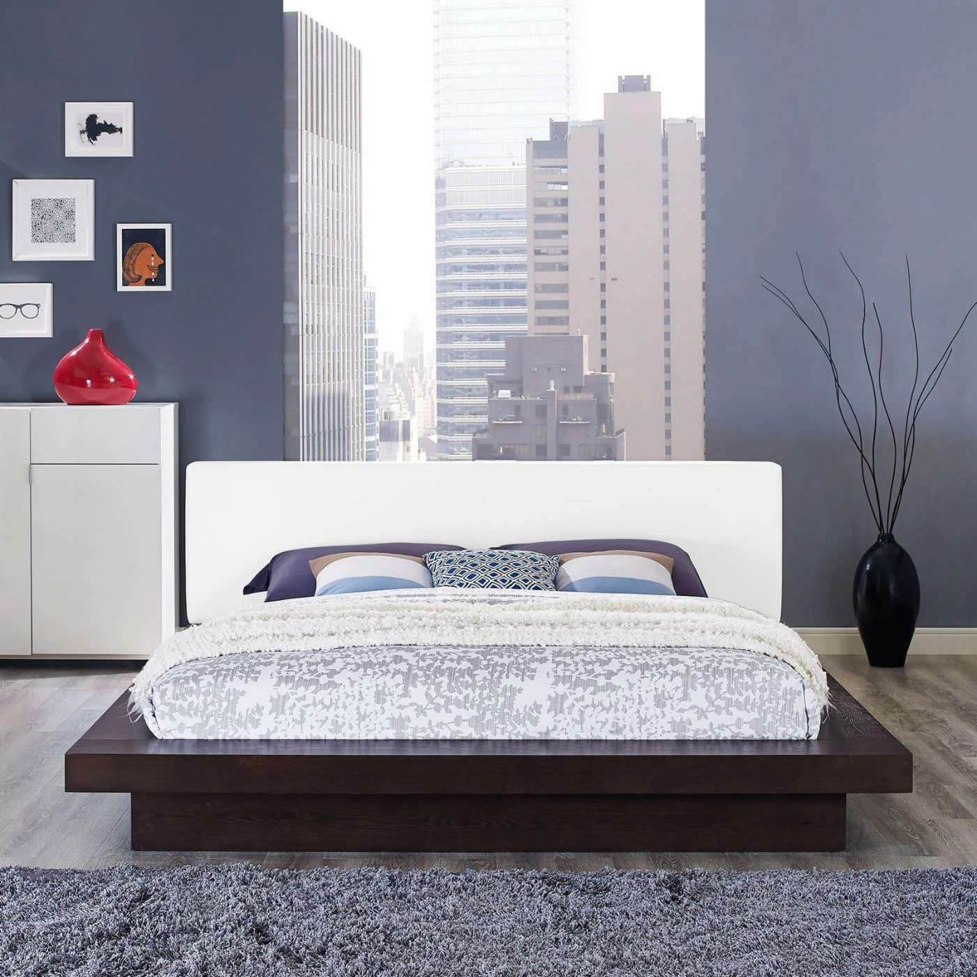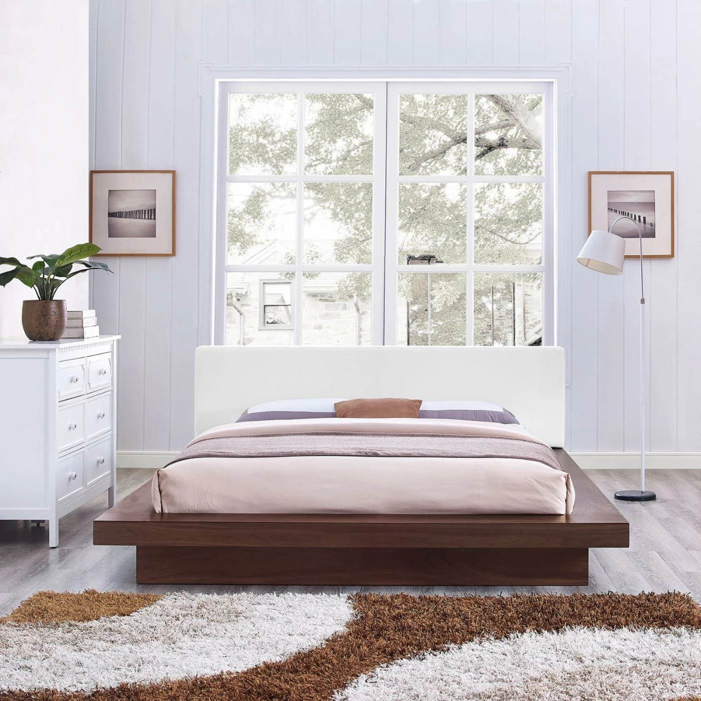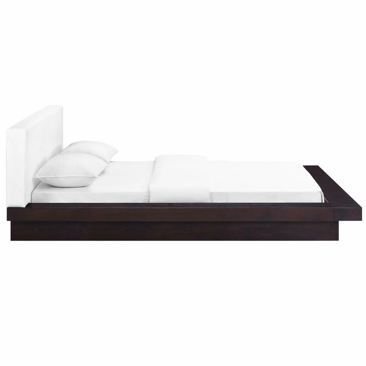 Add unmistakable flair to bedroom dΓ©cor with the Modway Freja Faux Leather Platform Bed β Queen. Constructed with a wood slat support system, this bed eliminates the need for a box spring while promoting a sleek modern aesthetic. A reinforced center beam enhances this bed’s stability, while an upholstered headboard adds a hint of glamour to the design. Designed to accommodate multiple mattress types, this bed is versatile and form and function, pairing easily with contemporary or modern decorative scheme.