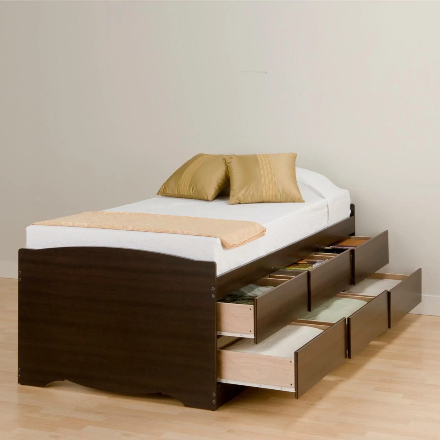 - 6 under-bed storage drawers for twin size option