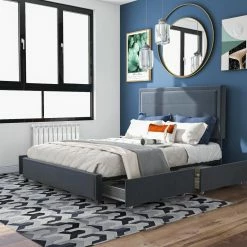 Coupon β¨ Queen Furniture Of America Metrolia 4-Drawer Upholstered Platform Bed – Full – Gray π