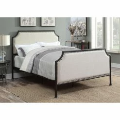 Best Sale π― King Right2Home Marine Quatrefoil Upholstered Platform Bed With Nailhead Trim π
