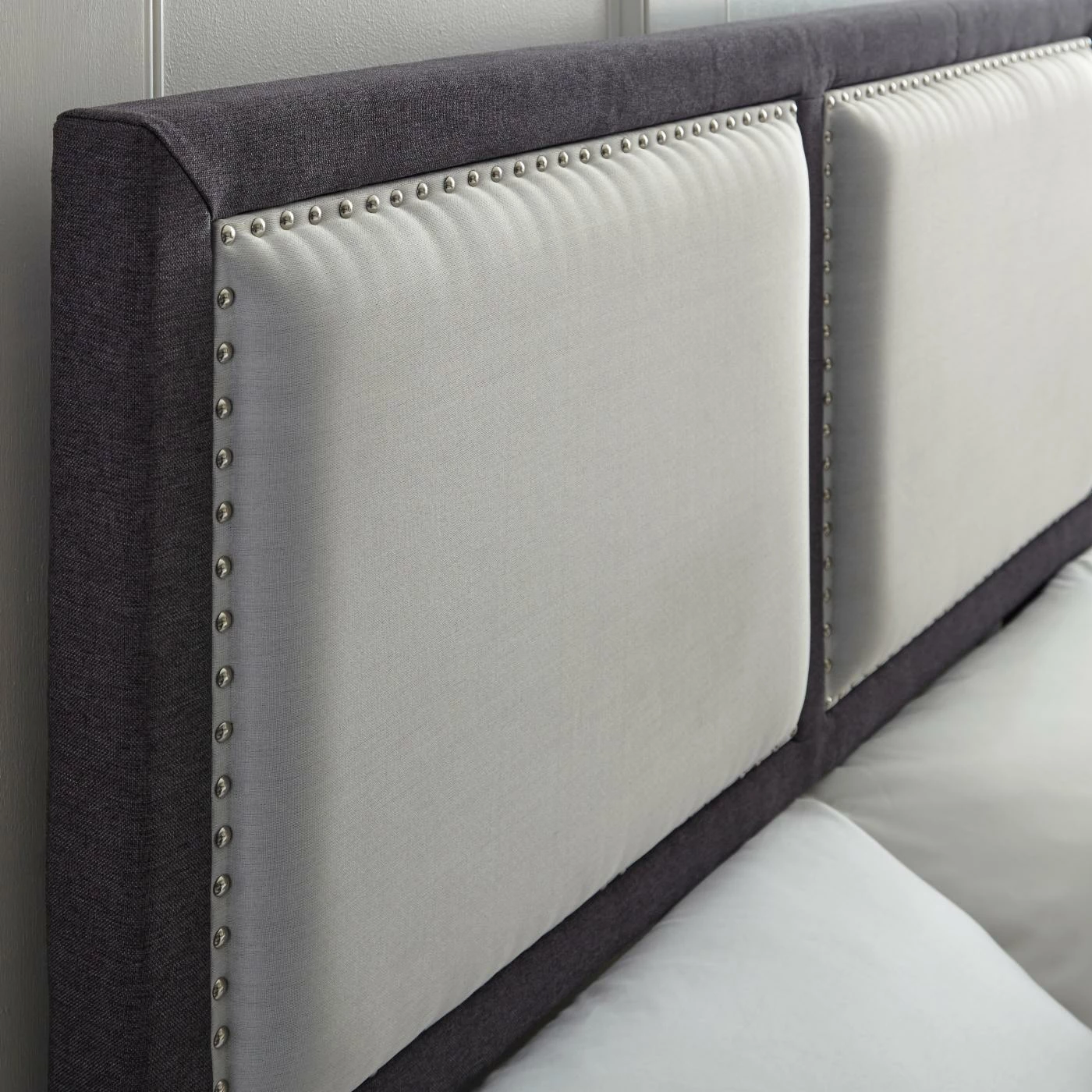 . This contemporary bed features upholstered, linen block detail that adds dimension to a solid hardwood frame. Since itβs a platform bed, it doesnβt require a box spring, just your favorite mattress.