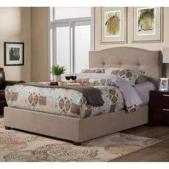 Beautifully transitional, the Alpine Furniture Amanda Upholstered Platform Bed – Haskett Jute blends the best of classic and contemporary styles. This platform bed has a subtly curvaceous, upholstered headboard with smart button tufting. To complete the look, the rails and low profile footboard are also padded and upholstered in a matching neutral fabric upholstery. This platform bed comes complete with a slat system so doesn’t need a box spring. Choose from a variety of size options.