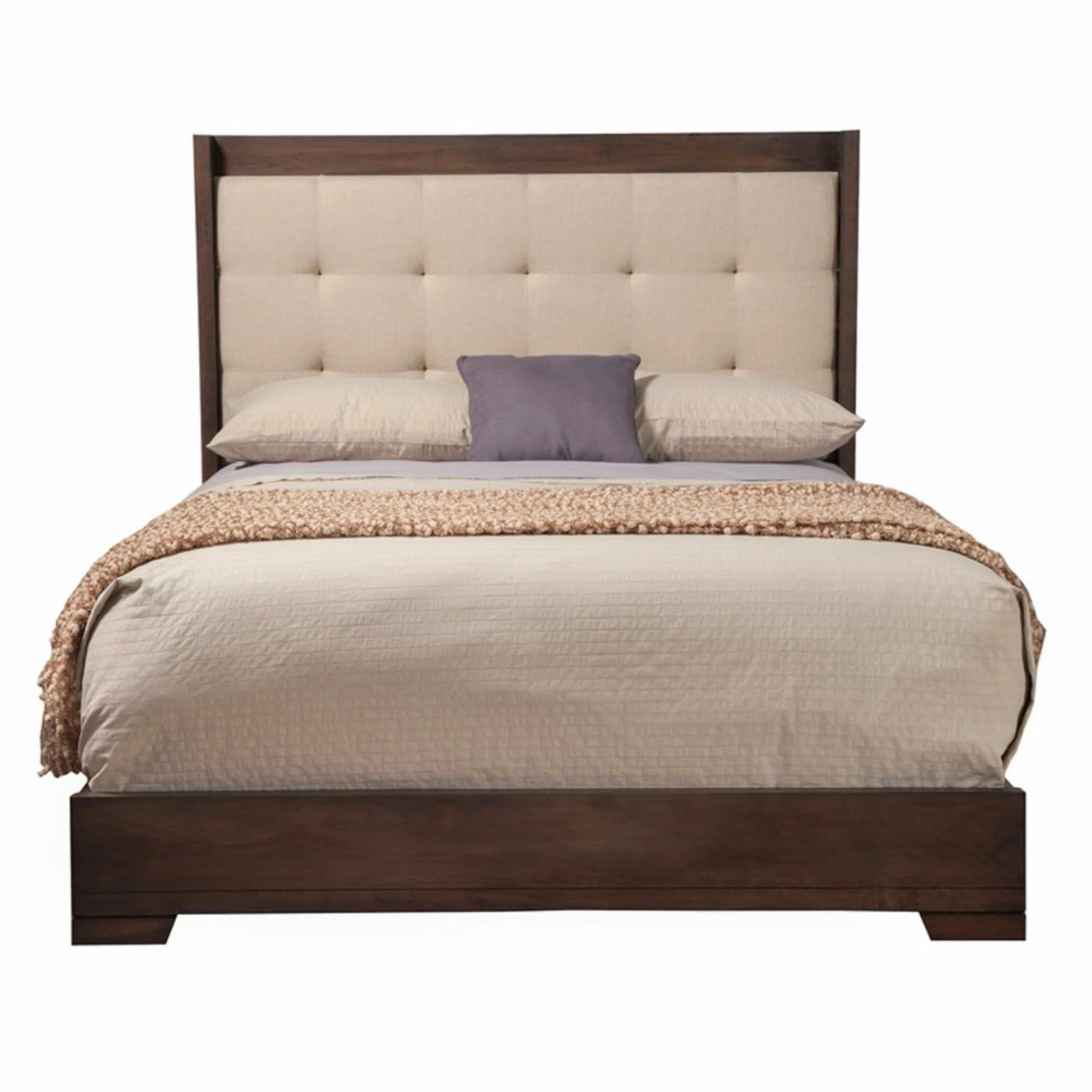 Contemporary and comfortable, you’ll want to lounge all day in the Alpine Furniture Savannah Upholstered Panel Bed – Pecan. This bed features an updated design with a lofty, upholstered headboard and low profile rails and footboard. The headboard is deeply tufted, padded for luxury, and upholstered in a gloriously neutral polyester fabric. It’s built heirloom-quality from plantation-grown mahogany solids and okoume veneers in a pecan finish with light wire brush detailing. Requires a box spring and mattress. Size options available.