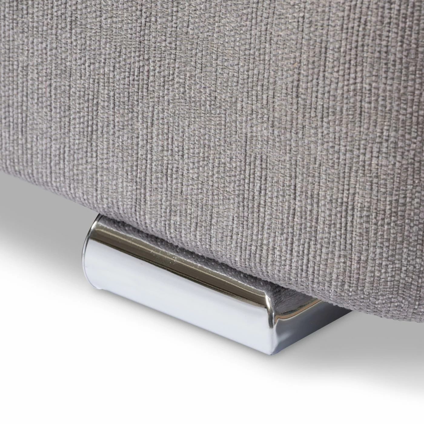 - Upholstered in textured grey fabric with grid-tuft design