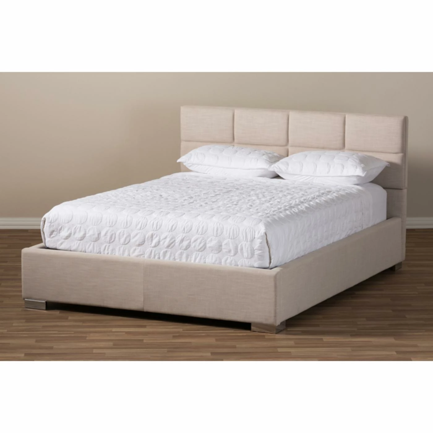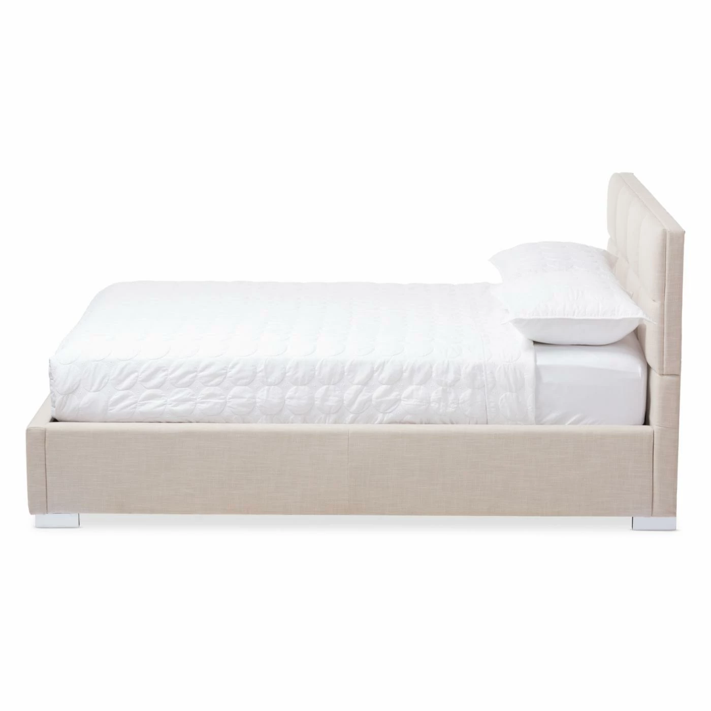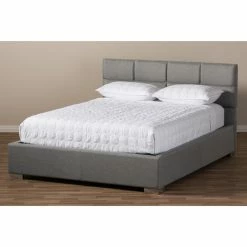 Minimalist and modern, the Baxton Studio Sophie Upholstered Platform Bed offers effortless style to spruce up your space. The solid hardwood and plywood frame is fully upholstered in your choice of fabrics – gray polyester or a linen blend in beige. Blocky grid stitching isn’t afraid to go bold, and the metal feet feature a shiny chrome finish. In your choice of size. No box spring required.