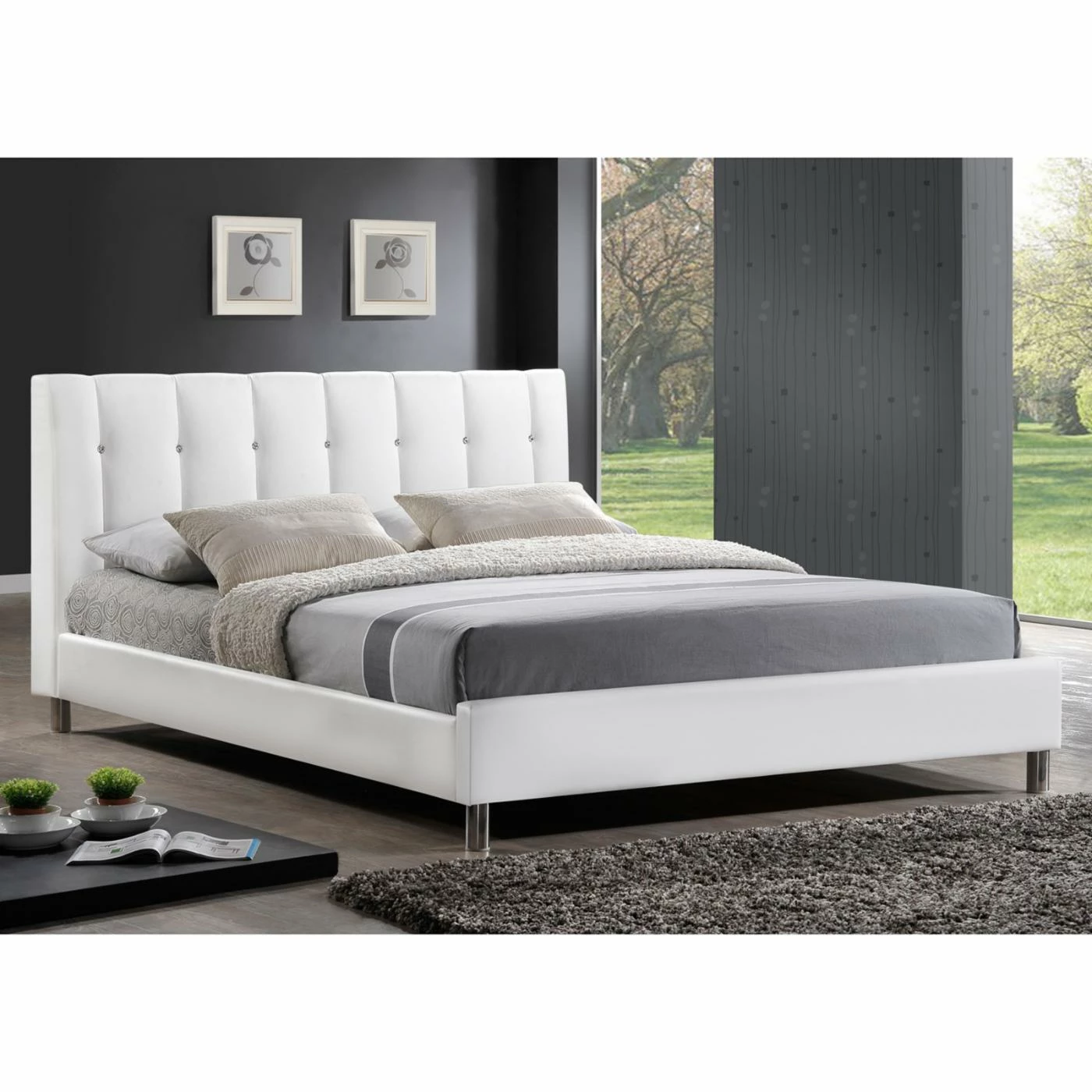 A good night’s sleep looks even better thanks to the Baxton Studio Vino Upholstered Platform Bed. Chic and sophisticated, this platform bed is fully upholstered in faux leather in your choice of color. Faux crystal button accents add a touch of glam, and the chrome-plated steel legs feature non-marking feet. The rubberwood frame, padded in foam for added comfort, comes complete with wooden slats, so no box spring is required. Choose from available sizes.