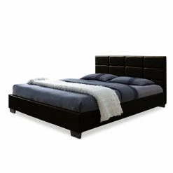 Cozy up to the contemporary charm of the Baxton Studio Vivaldi Upholstered Platform Bed. Faux leather upholstery in your choice of color features a stitched grid design, while generous foam padding makes it easy to sit up in bed. Plus, the rubberwood and engineered wood frame comes complete with sprung wood slats with a center support rail to give your mattress the solid base it needs – you won’t even have to worry about a box spring. In your choice of size.
