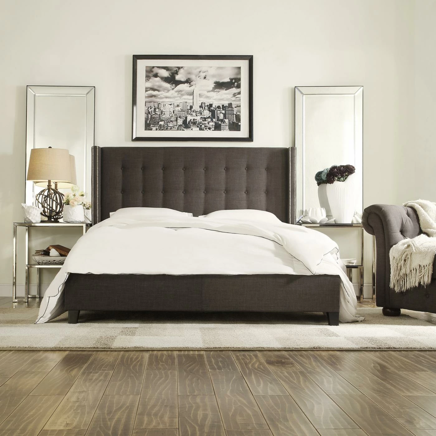 - Button tufted wingback headboard