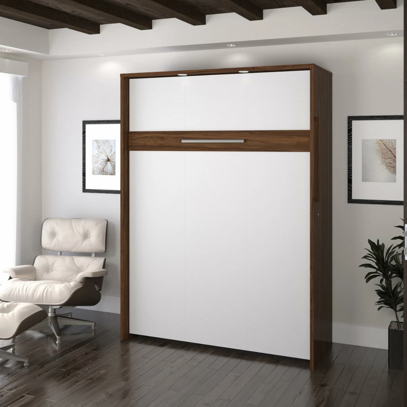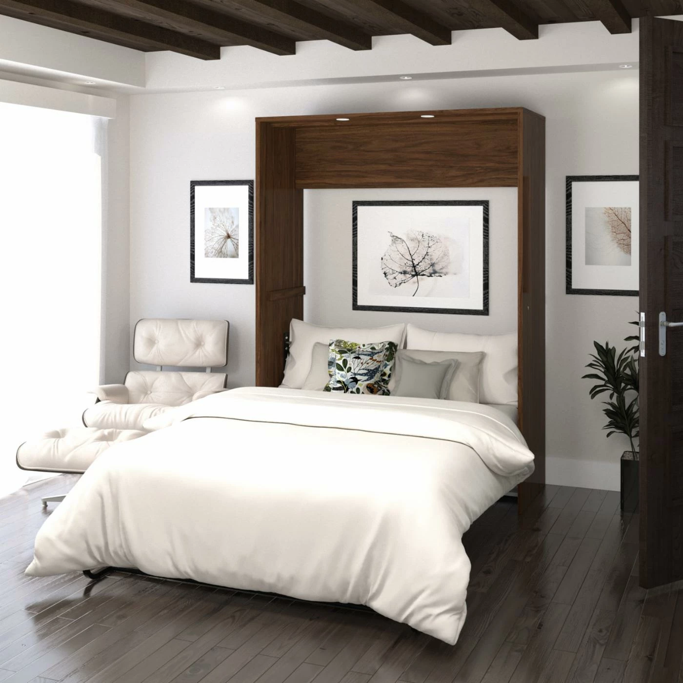 The murphy bed is one of those designs that has greatly benefitted from modern innovation, and now we have the Cielo by Bestar Wall Bed to prove it. This elegant bed is housed in a modern cabinet made from engineered hardwood with an exterior of scratch-resistant melamine laminate. You can choose the two-tone color palette that best suits your space, and they’ll both look fabulous with the slim metal handle and its brushed-nickel finish. A traditional murphy bed would have used springs, but this design incorporates dual pistons for an effortless motion going up and down. A metal leg folds down to support the bed, and not only is this design a space-saver, but it also accommodates a standard mattress up to 12 inches thick. A system of curved slats support the mattress and eliminate the need for a box spring. A bit of interior LED lighting gives it a cozy charm that creates a proper sleeping area. It’s easy to install, as all the necessary hardware is included. Just make sure that you anchor in into wall studs. The Cielo by Bestar collection offers a wide range of pieces, so take a look at see what else you can add to build the closet that you’ve always wanted.