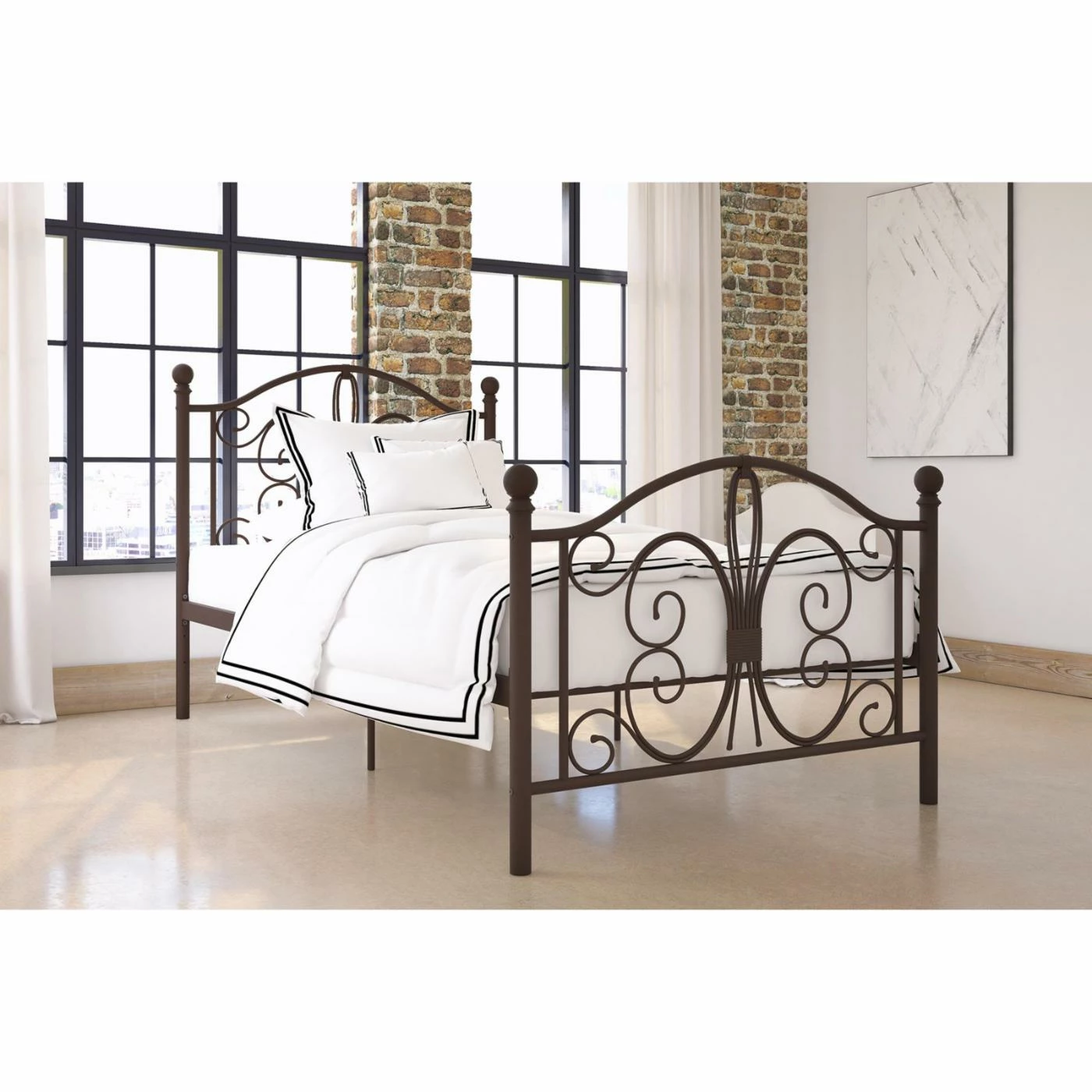 Classic scrolls and ball finials give the DHP Bombay Metal Platform Bed its traditional appeal. Your choice of available finish allows you to customize the look of this metal bed. It features a Slat roll foundation so doesn’t need box springs. Choose from the available sizes.