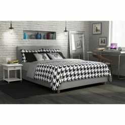 For a touch of modern elegance that doesn’t lack in comfort, the DHP Maddie II Upholstered Platform Bed is made for your contemporary bedroom. The rectangular shaped frame is upholstered in gray linen for a neutral, sleek, and cozy feel. The 39.5-inch headboard has column detailing, and the bed comes in your choice of available size to fit your needs. With the included bentwood slats, this bed doesn’t require a box spring.