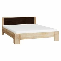 The bed is constructed from engineered wood (also known as medium density fiberboard or MDF). This type of wood is made using compressed wood fibers. It comes in a natural oak finish with white feet.