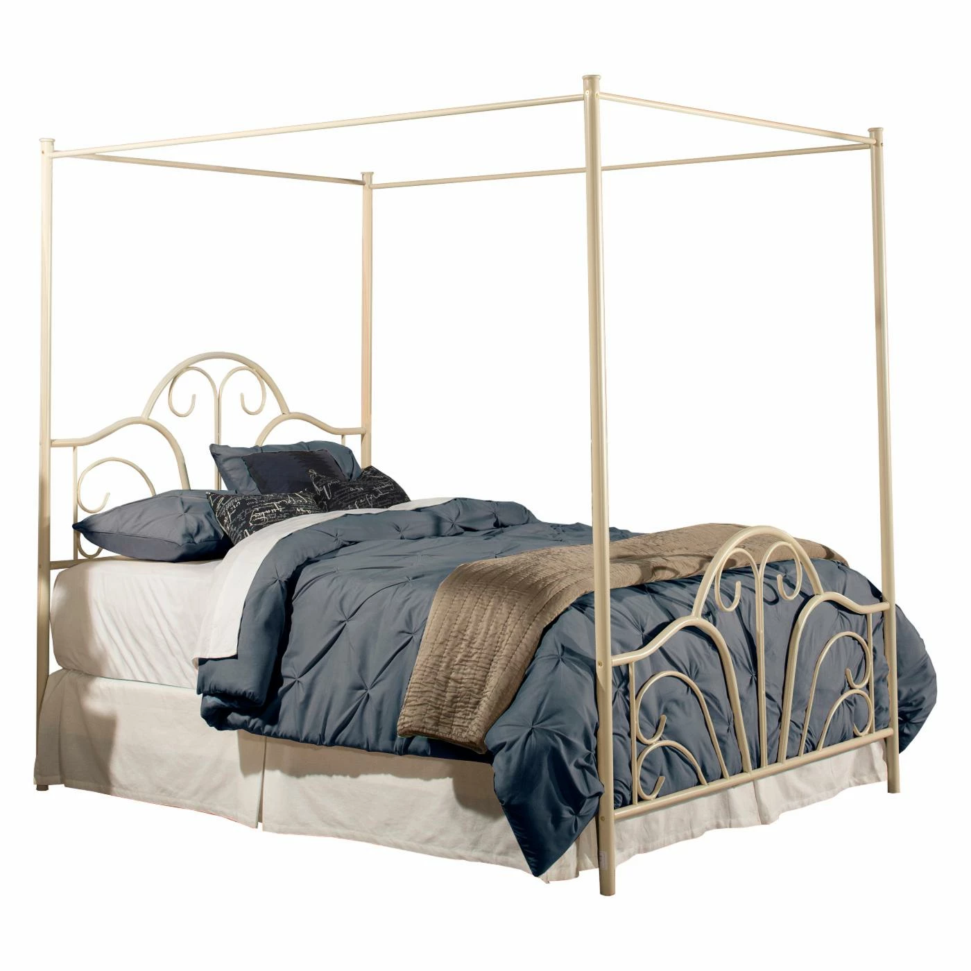 The Hillsdale Furniture Dover Bed Set – Full – w/Canopy & Legs – Bed Frame Not Included – Cream Finish is a romantic showcase of traditional style elements. It boasts an open-frame canopy with intricate metal scrollwork in the headboard and footboard. This canopy bed is offered in multiple size options.