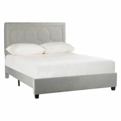 No matter what your bedroom storage collection looks like, the HN Home Mesquite Transitional Panel Bed will fit right in. This panel bed features a wood frame that’s completely covered with velvet upholstery. The upholstered design is available in your choice of available colors. No matter which option you choose, it will be decorated with trim and an oversized scalloped design made up of nickel-finished nailheads.