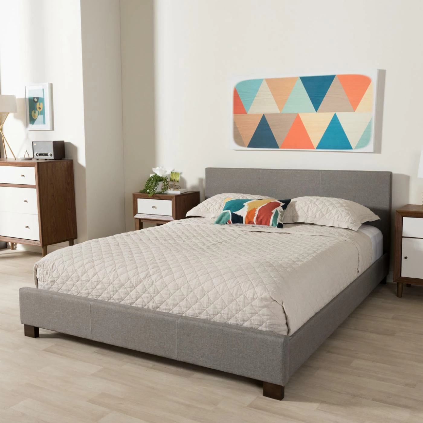 Provide your guest room or bedroom with the HN Home Spokane Transitional Panel Stitched Upholstery Platform Bed for a stunning, sleek contemporary centerpiece. The frame is supported by robust wood with sleek block feet. Dense foam is used to pad the frame, and is then upholstered with durable polyester fabric. Choose from available fabric color options to achieve the perfect look to suit your space. A chic rectangular panel-stitched headboard crowns the piece. The bed is designed with a slat platform that allows you to rest the mattress on the frame without a box spring. Select from available sizes.