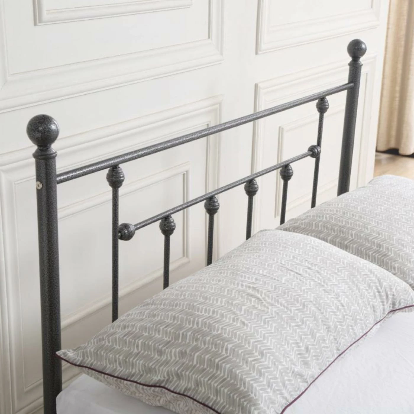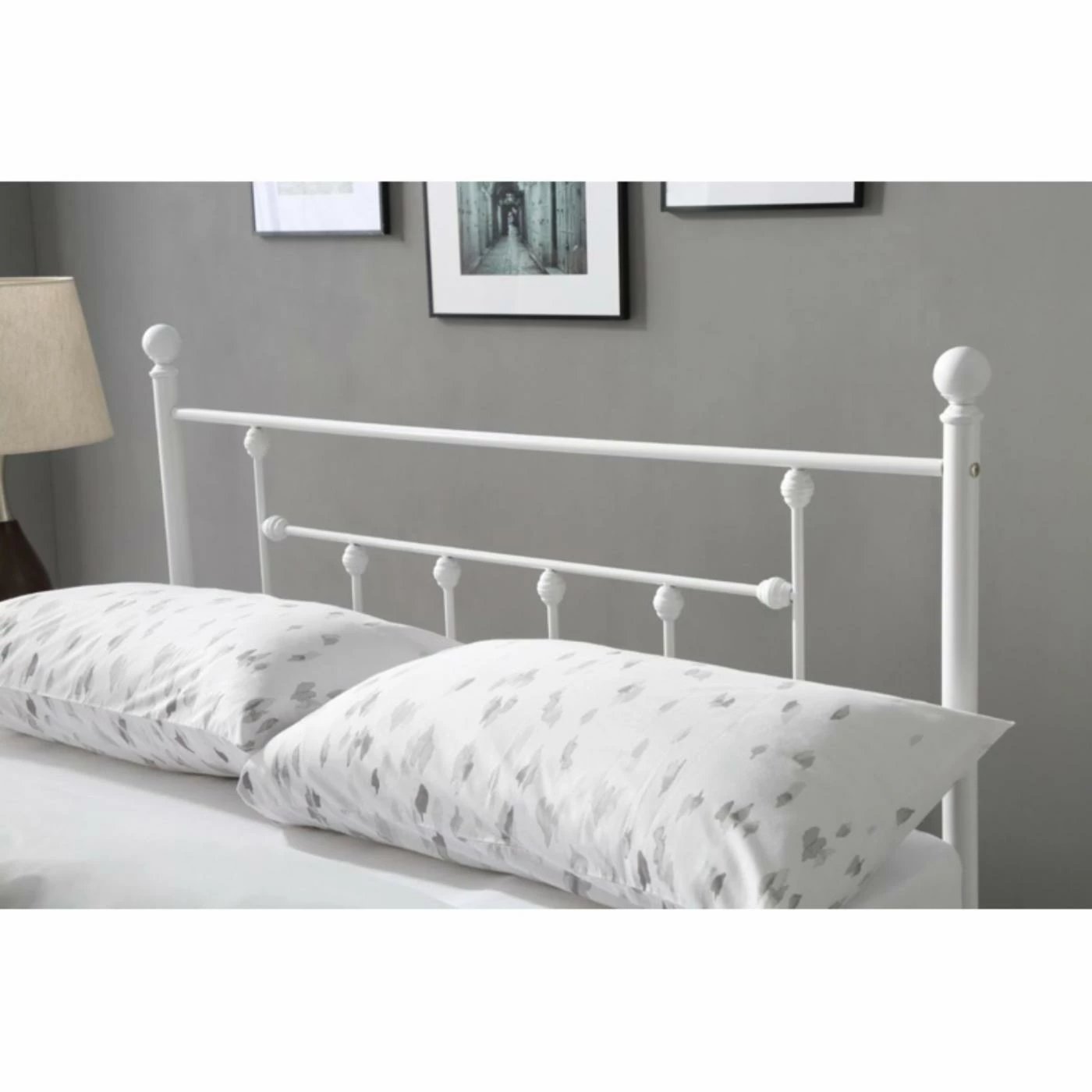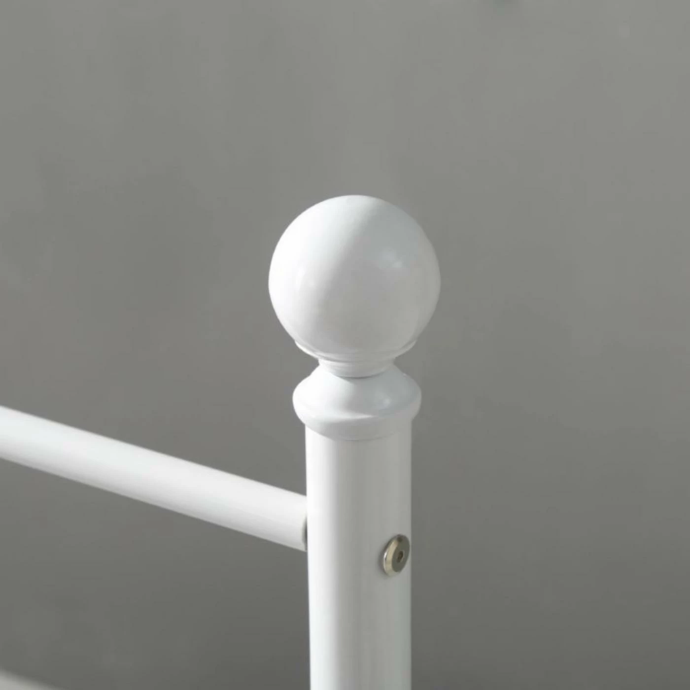 Classic spindle design gives the Hodedah Imports Metal Spindle Poster Bed a charming traditional look. Subtle finial detail adds polish to the look. The metal frame is highly durable and reinforced by six main legs and extra legs along the middle. This support eliminates the need for a box spring, and allows you to place your mattress right on the frame slats.