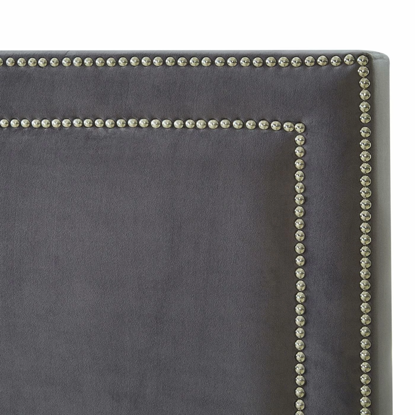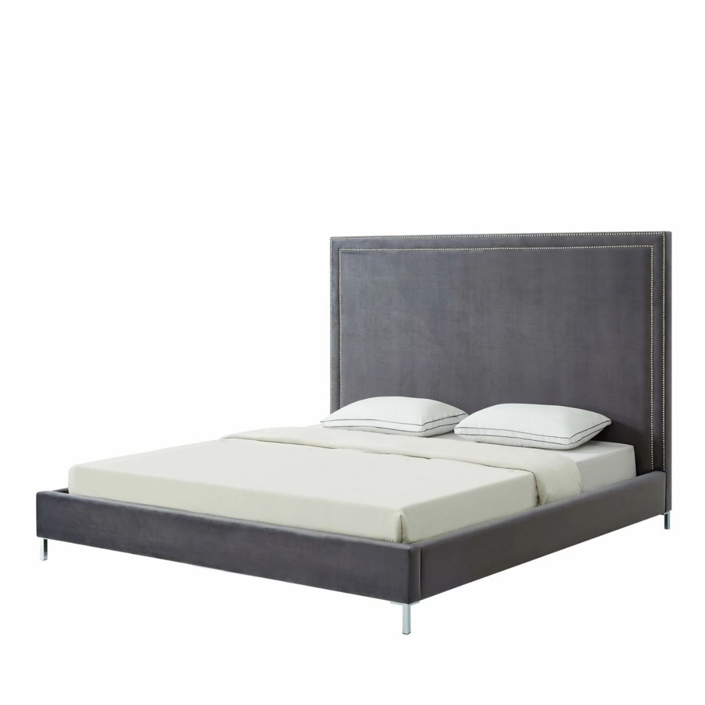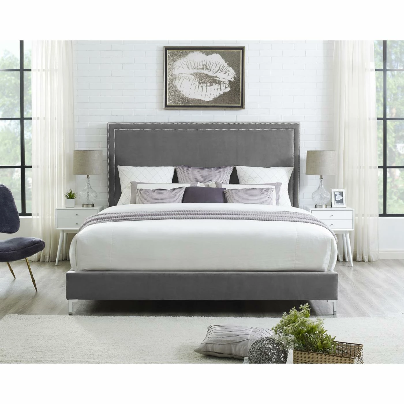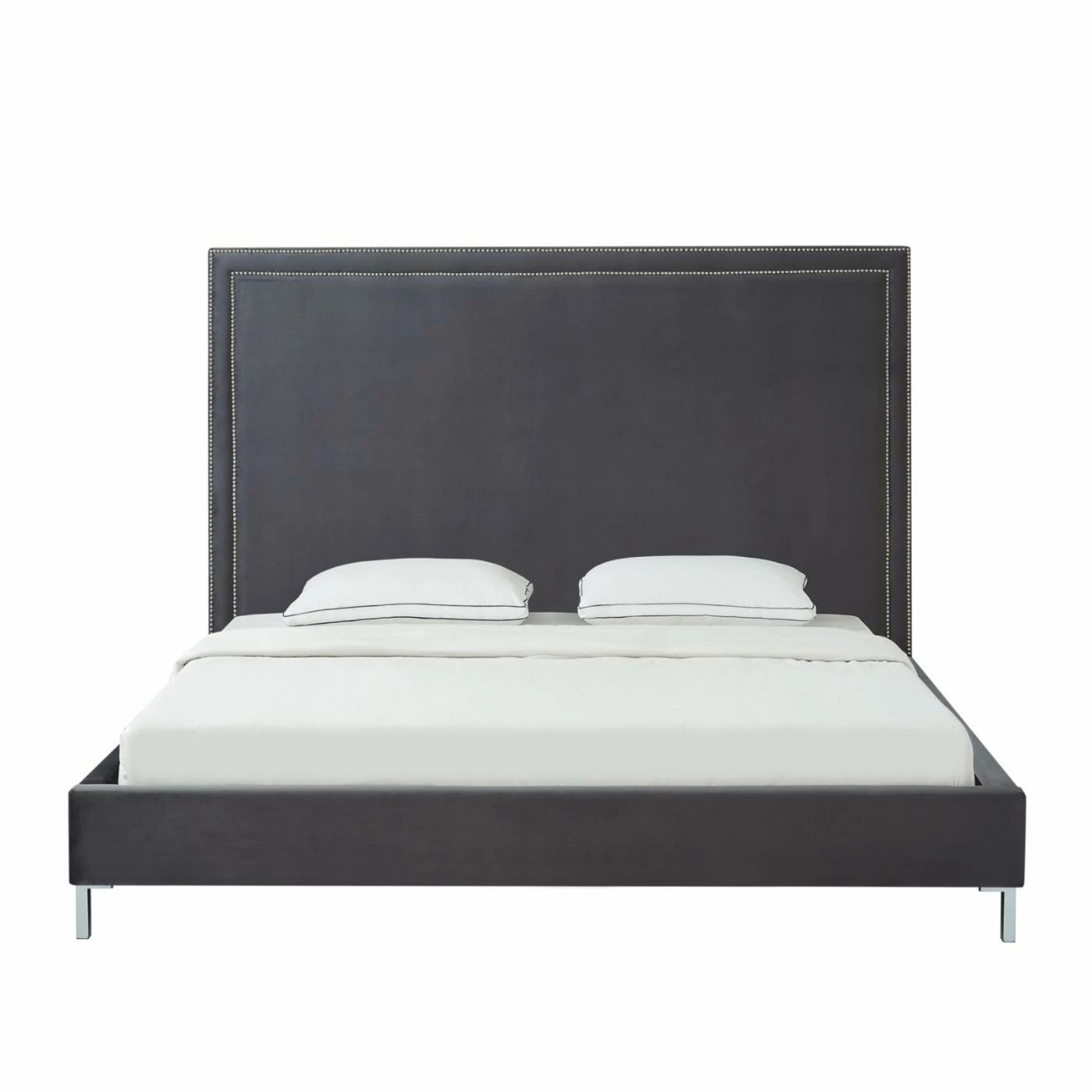 Center your bedroom design around the Inspired Home Reese Velvet Upholstered Platform Bed. This platform bed is crafted of wood, enhanced with high-density foam, and covered in luxuriously soft velvet upholstery. A nailhead trim details and metal feet add a touch of shine to this chic design. Choose from available size and color options to make it yours.