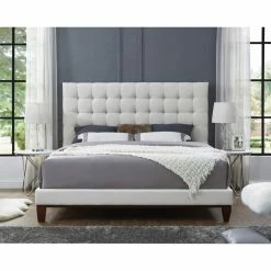 A luxurious bedroom begins with the Inspired Home Scott Linen Upholstered Platform Bed. This platform bed is designed to support your mattress without the use of a box spring. The headboard is tufted for a sleek and tailored look. Wood feet elevate this piece and complete the sophisticated effect. Choose from available size and color options to make it yours.