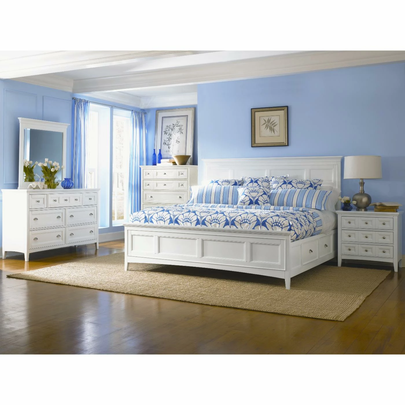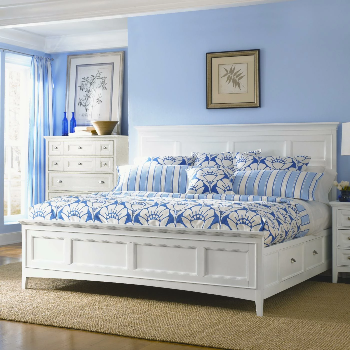 Timeless and beautiful, the Kentwood Low Profile Bed Set will bring a high-profile to any bedroom. The perfect combination of practical storage, comfort, and casual style, the bed is crafted from hardwood solids with a beautiful white finish. It features a classic panel design, bolt-on rail system, and four slats for support. No box spring is required. Four built-in storage drawers on the sides make it easy to stow away your bedding, clothing, and other items. Drawers feature brushed-nickel cup pulls for added style. Available in three bed sizes to suit the needs of your space.