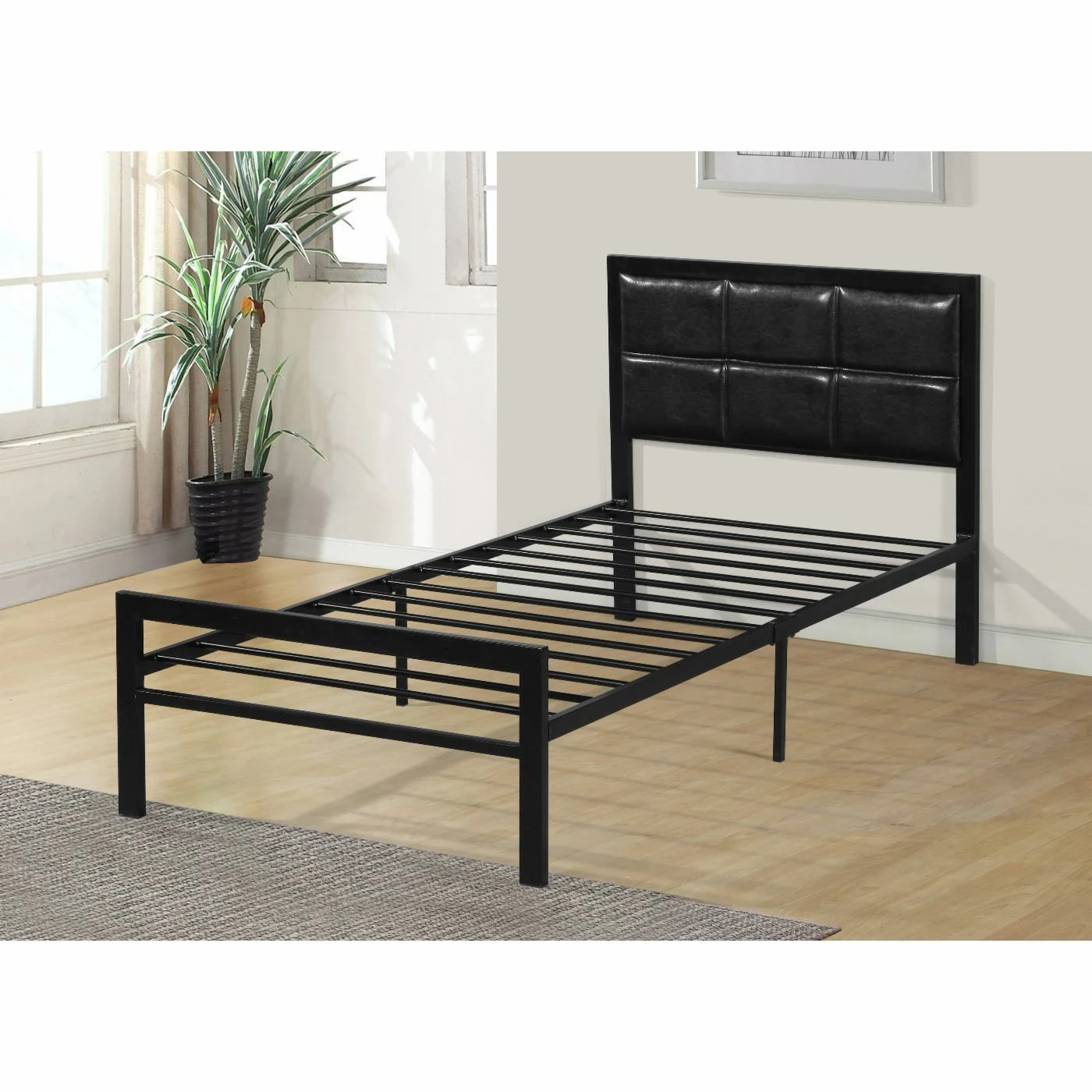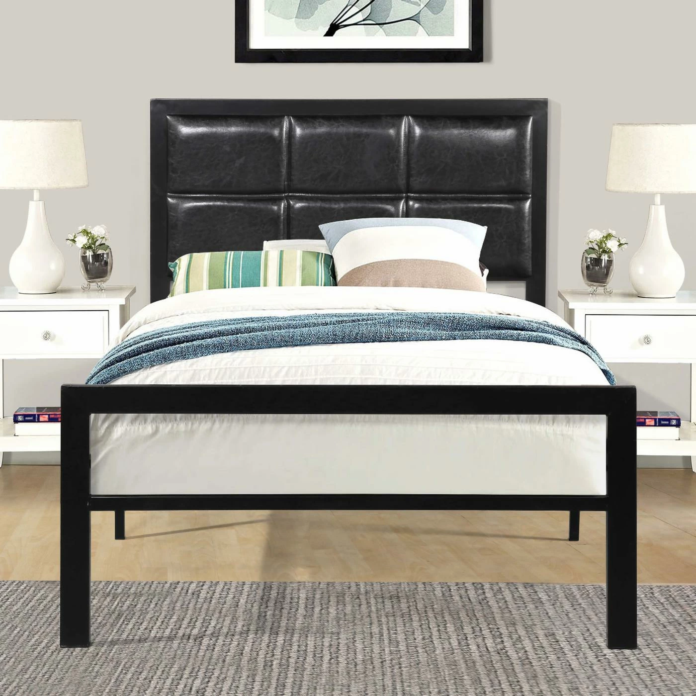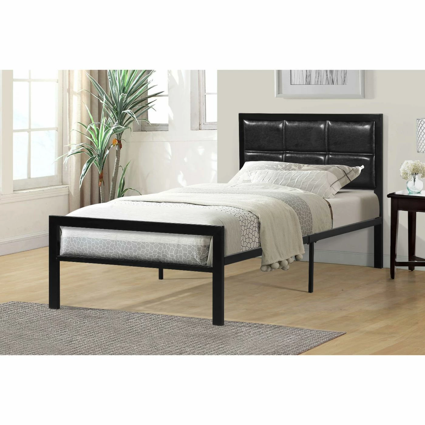 Add contemporary sophistication to your room with the Milton Greens Stars Arlo Metal Platform Bed. This bed frame has a platform construction that eliminates the need for a box spring. Choose from the available sizes to ensure this bed fits your room. A durable metal construction and a black faux leather upholstered headboard makes this a timeless piece.