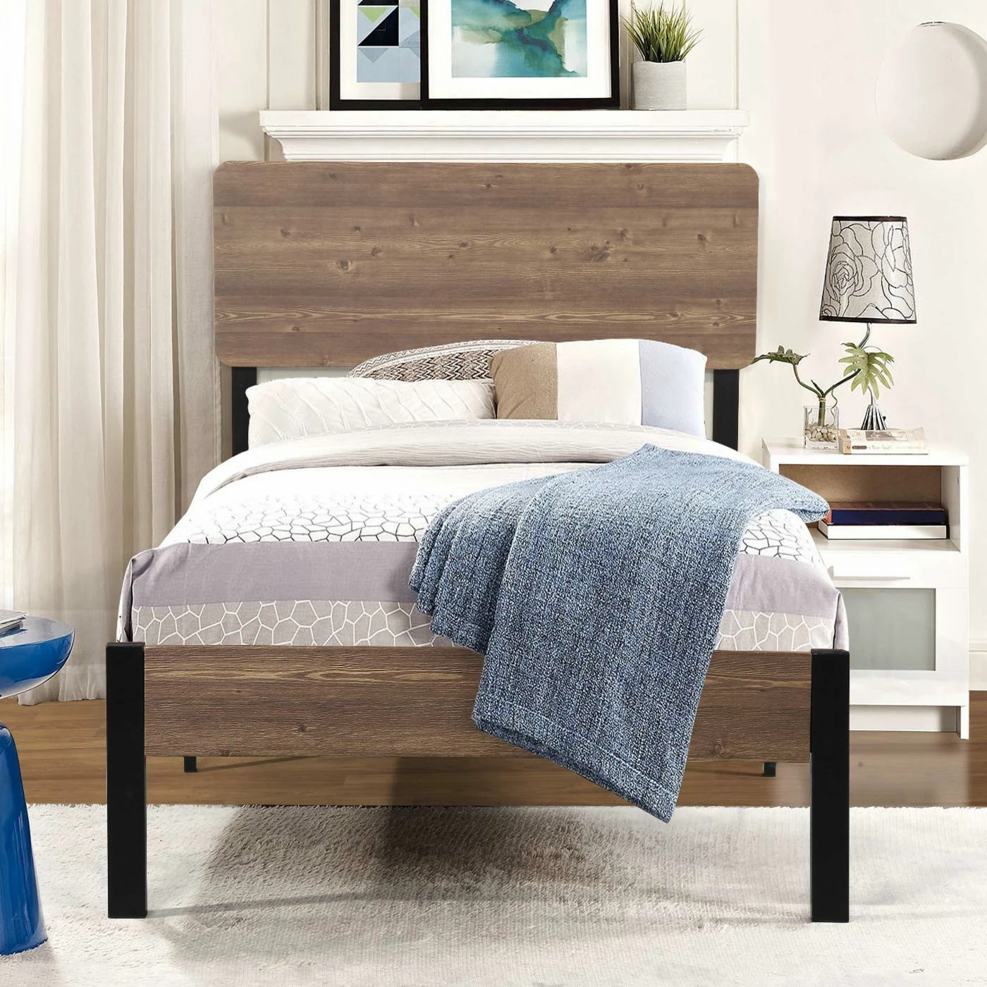 Enjoy the sophisticated rustic vibe of the Milton Greens Stars Nolan Metal Platform Bed. This bed frame is constructed of durable metal and accented with engineered wood panels on the headboard and footboard. No box spring is required for this bed. You can choose from the available sizes to get the right fit for your room.