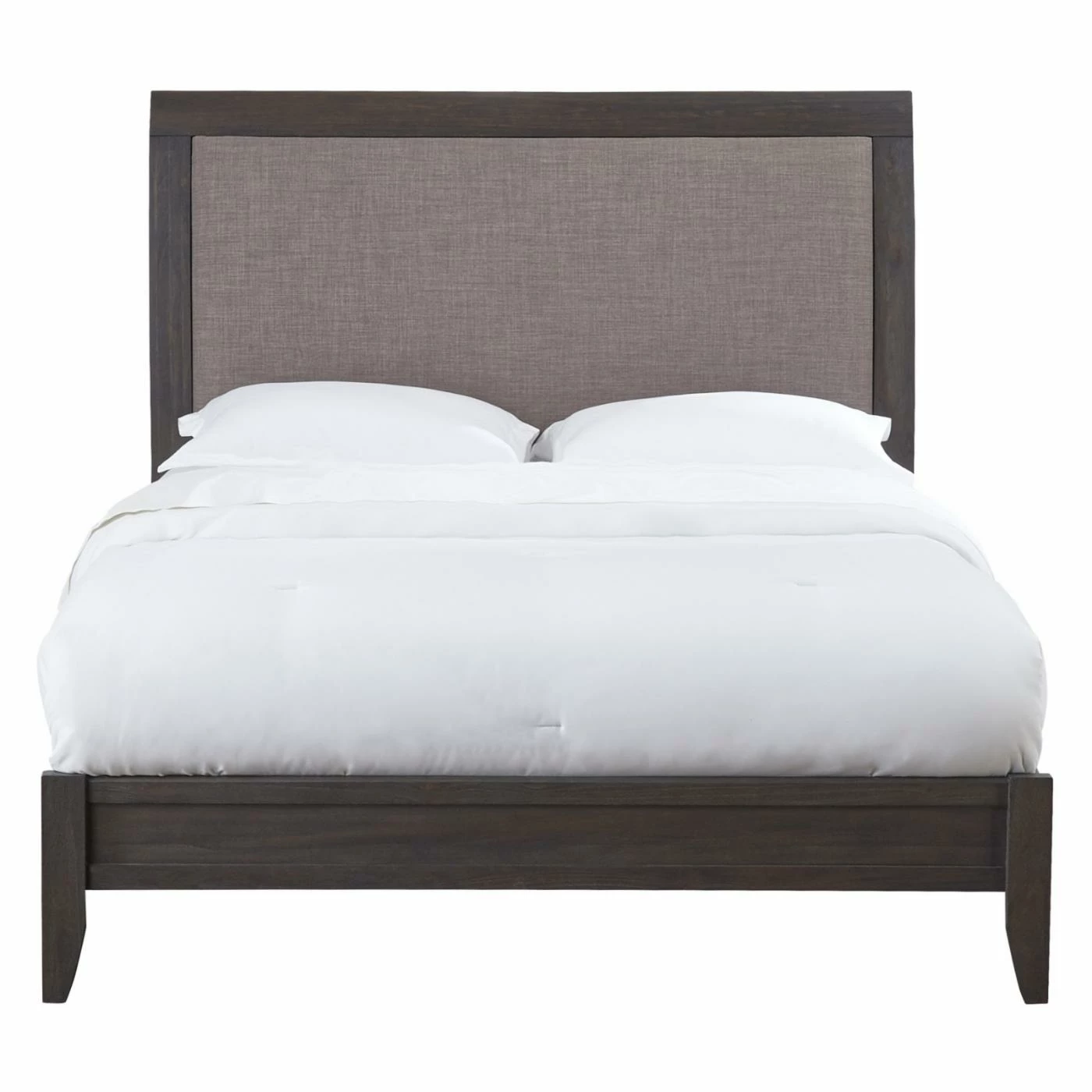 The Modus City II Upholstered Sleigh Bed is the epitome of understated elegance. The soothing tones of the frame, finished in a wire brushed basalt gray, highlight the beauty of the solid mahogany and veneer construction. The sleigh style of the headboard curves ever so gently back, allowing you to rest comfortably against the padded headboard upholstered in dolphin hued 100% polyester with a linen texture. Simple lines, including the slightly tapered legs, let you include this stunning bed in a wide range of decors, from classic to Modern. Choose from available sizes to best suit the needs of your home.