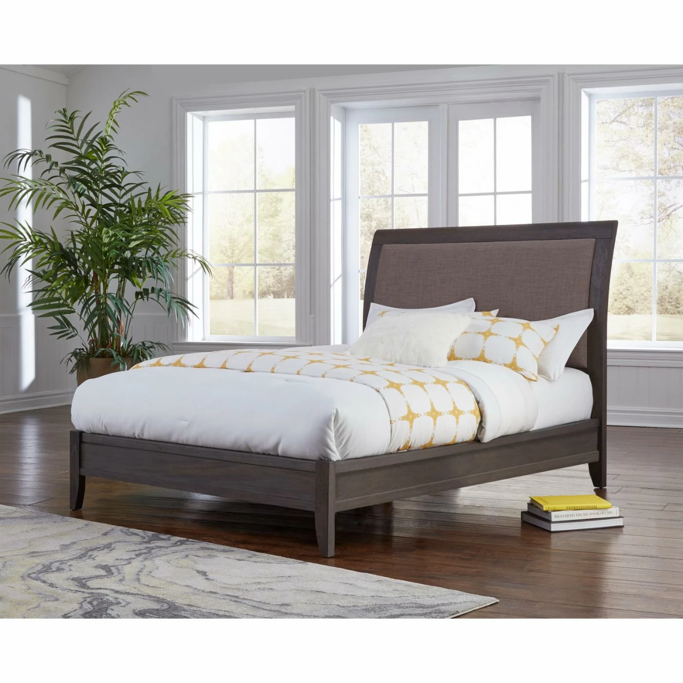 - Padded sleigh style headboard