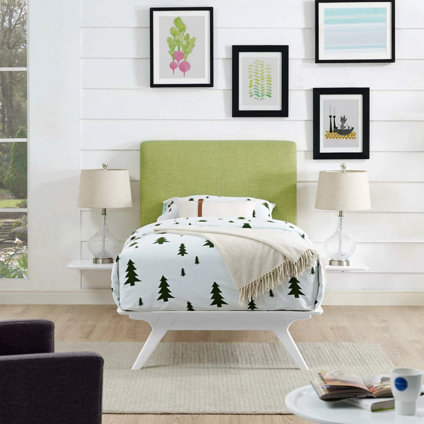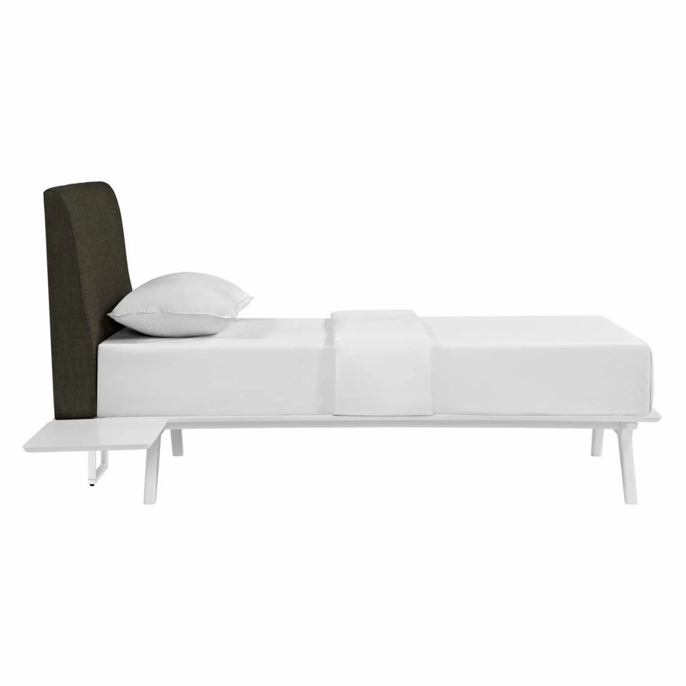 Enhance the comfort and style of your bedroom with the Modway Tracy 3 Piece Bed Set. This platform bed features side tables that perfectly complement is sleek, Mid-Century Modern style. Crafted from high-quality materials including elegant ash veneer, this bed boasts a contemporary-chic platform style complemented by a foam-padded upholstered headboard. Remember to choose from available size and finish options when placing your order.