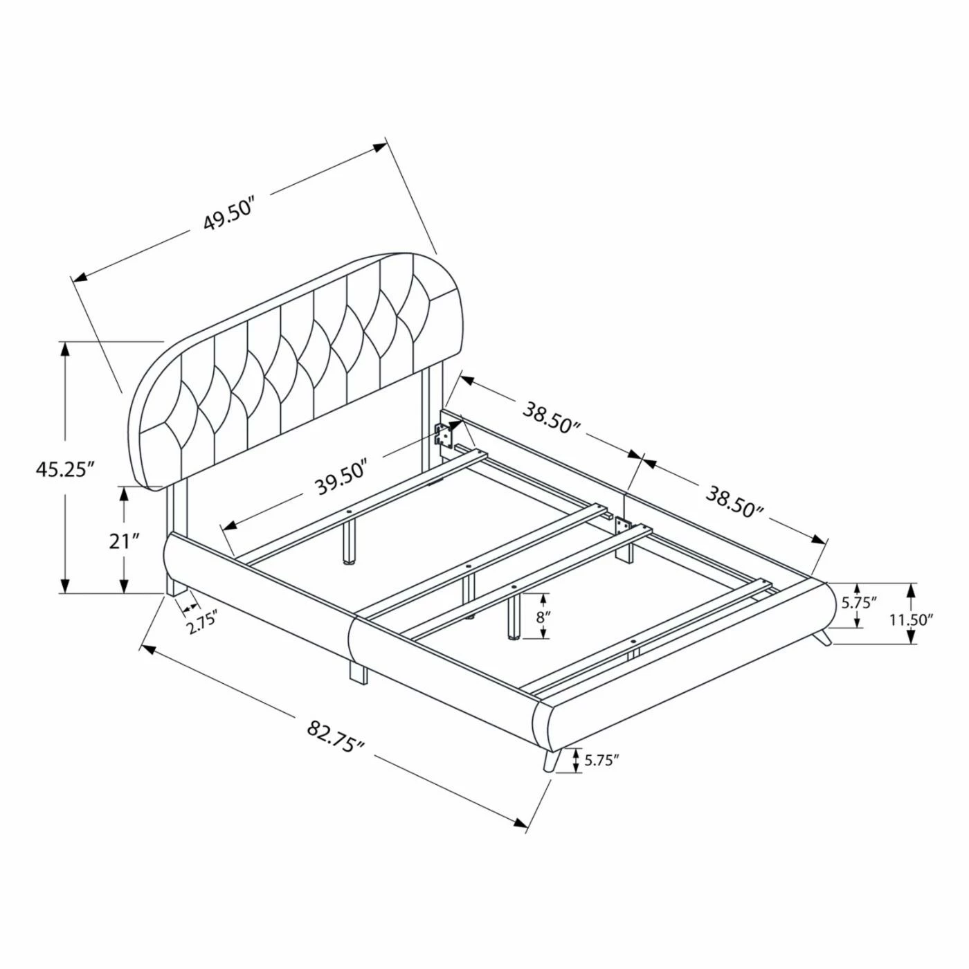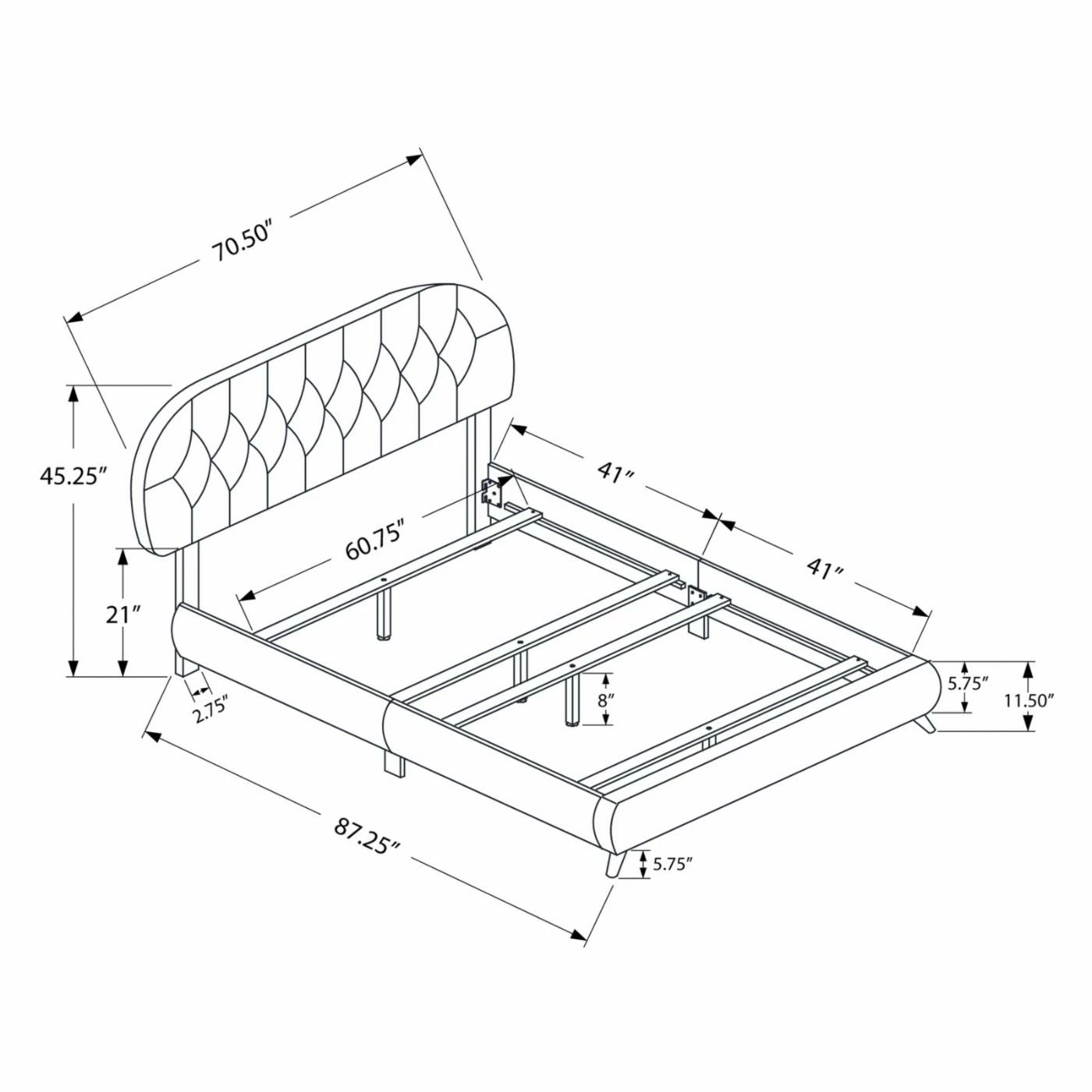 - Queen: 70.5W x 87.25D x 45.25H in.