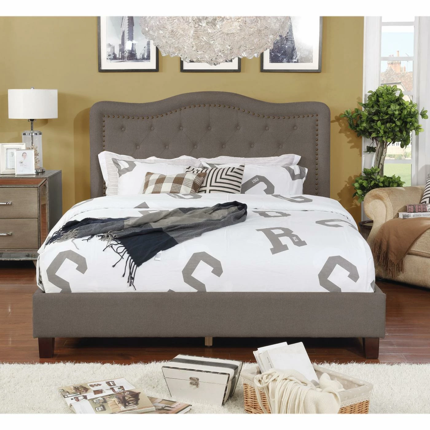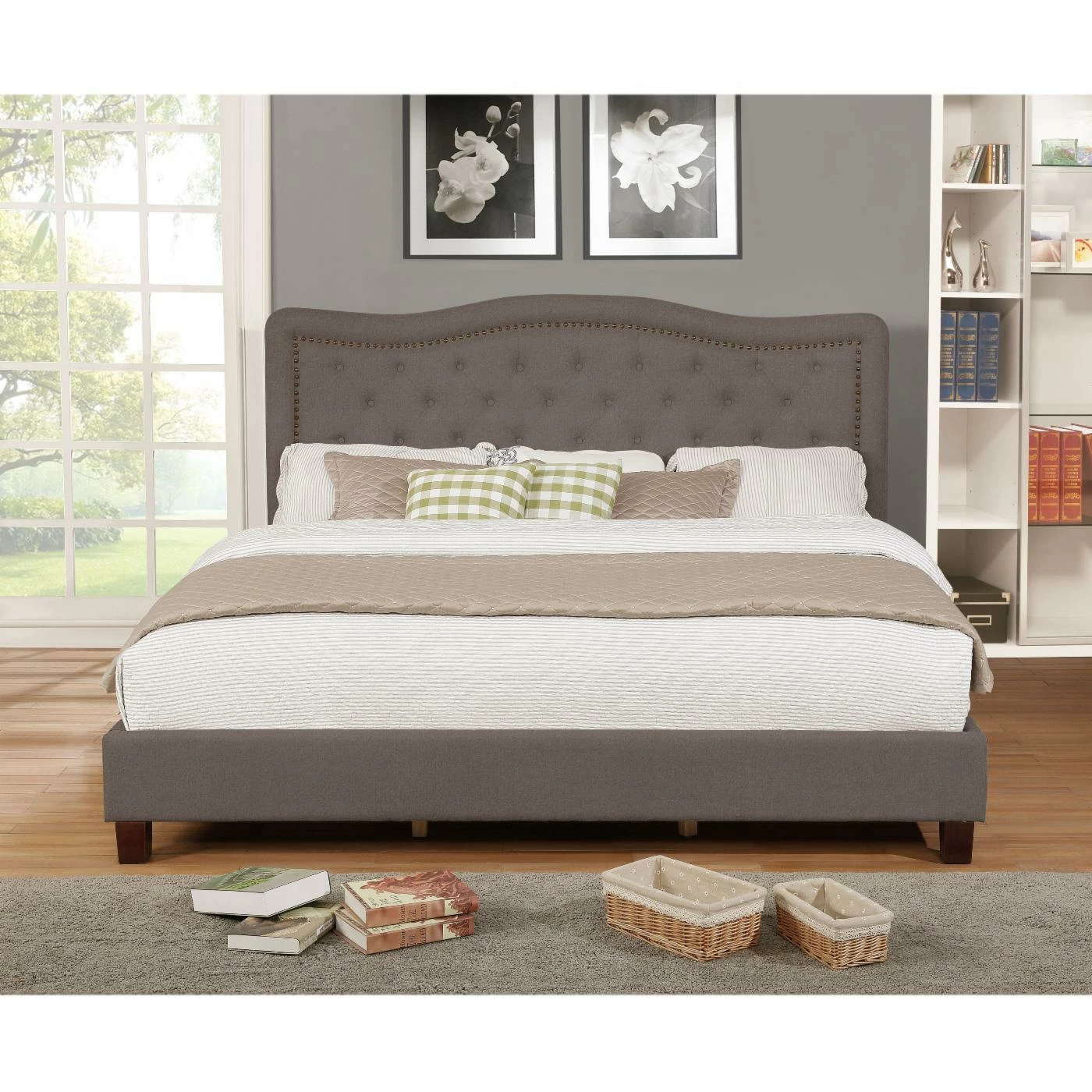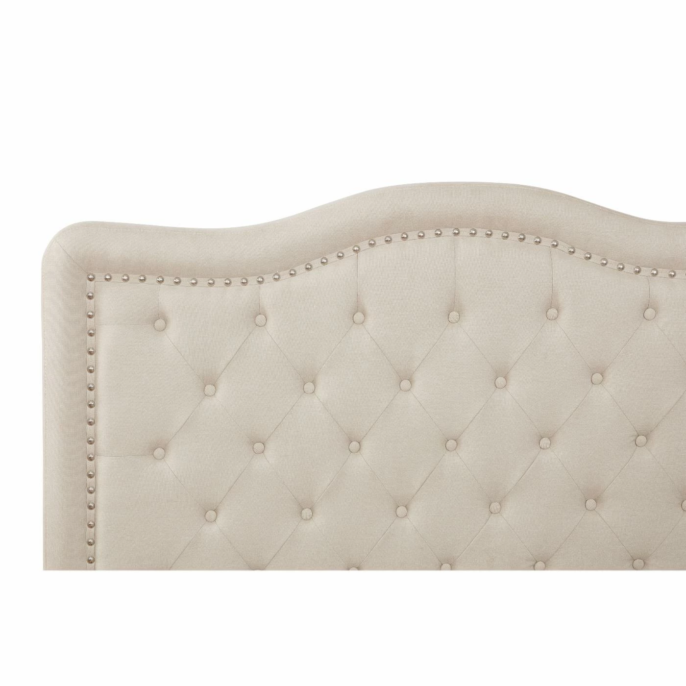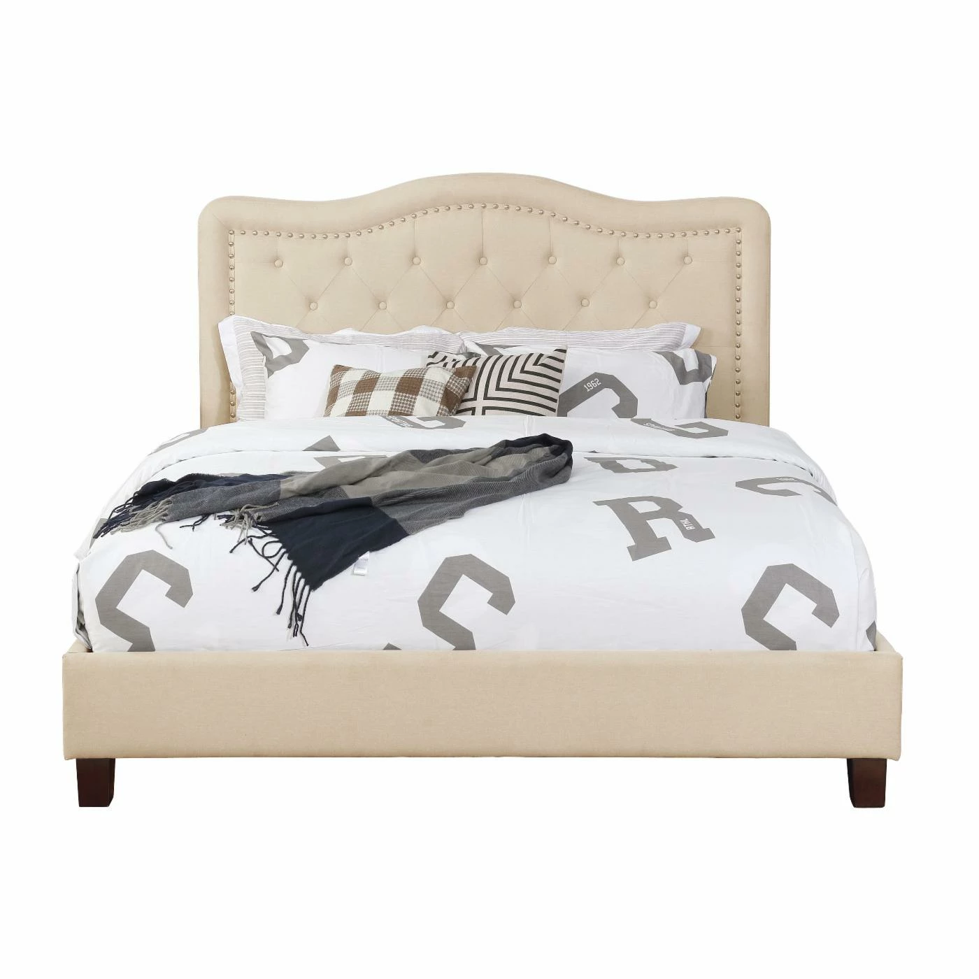Make yourself feel like honored royalty by building your new casual modern bedroom around the Nathaniel Home Angelina Upholstered Platform Bed. This platform bed is built from solid hardwood and need no box spring. Block feet provide a sturdy surface. The headboard has a sweeping camel-hump arched look and is deeply diamond-tufted with a nailhead trim. Thick, soft foam is used to pad the frame, upholstered in lush, durable fabric. Choose from available size and color options to make it yours.