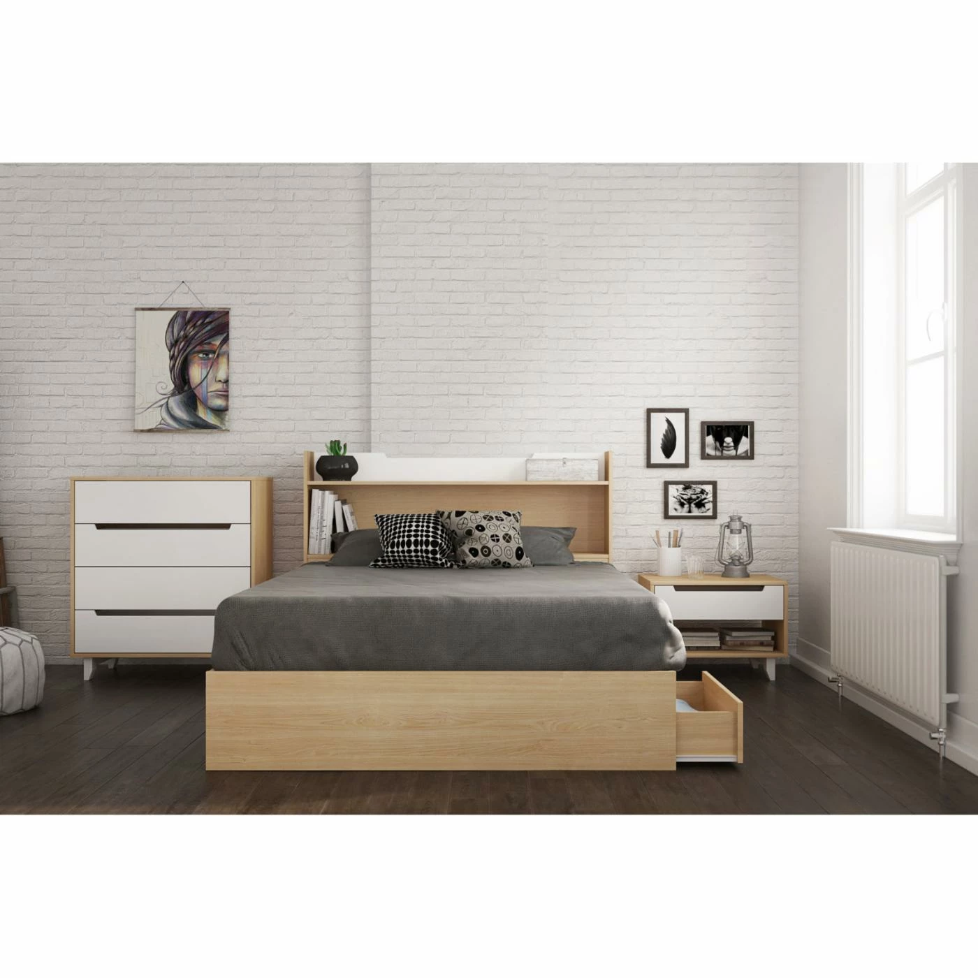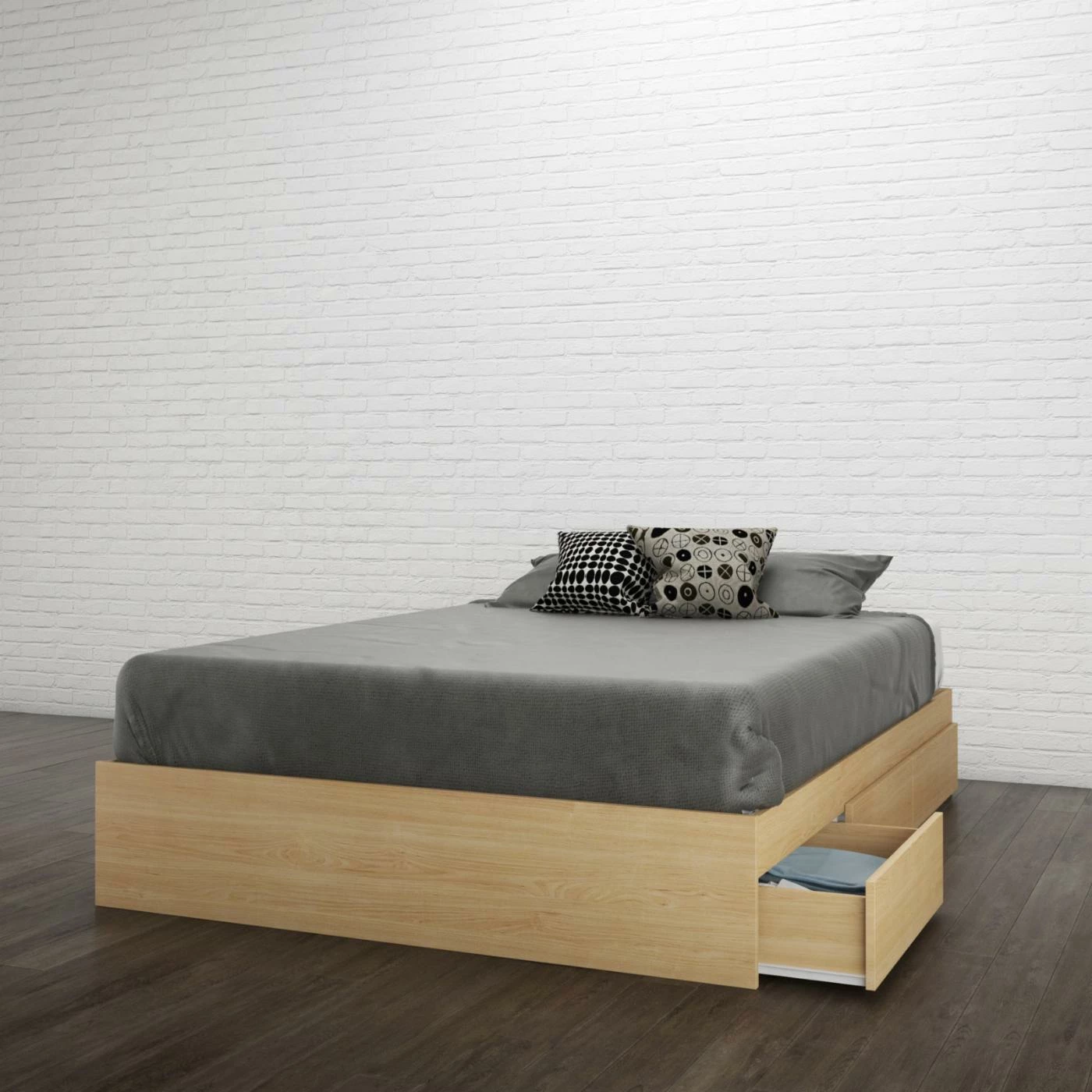 Maximize the square footage in your home with the Nexera Karlstad 3 Drawer Natural Maple Storage Bed. The space-saving design features three roomy drawers for storing clothing, toys, or extra linens. The warm maple finish adds an inviting feel to a variety of contemporary decors. You’ll enjoy the sturdiness of the platform base which eliminates the need for a box spring. Your choice of available sizes promises just the right fit, making this the ideal addition to master suites or guest rooms.