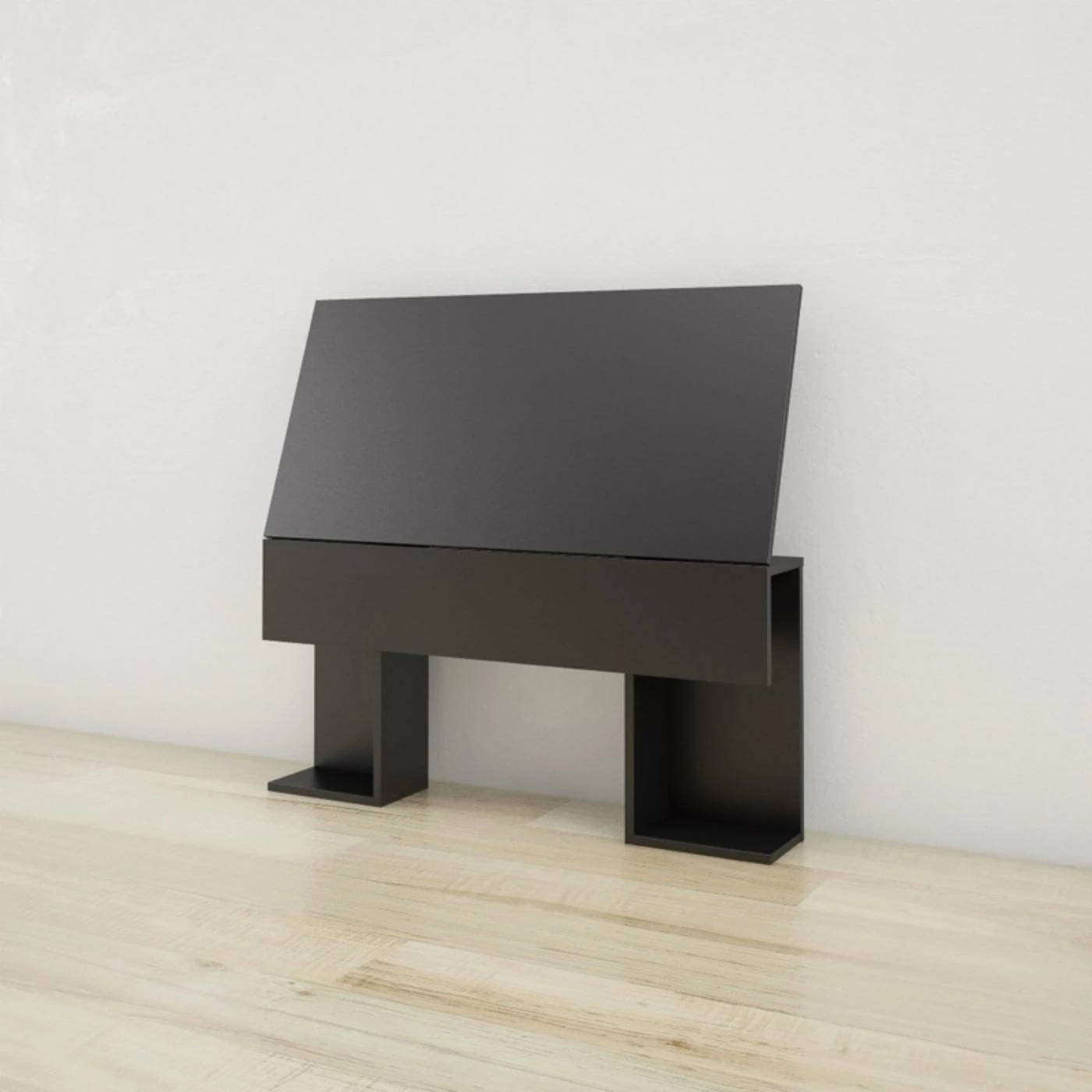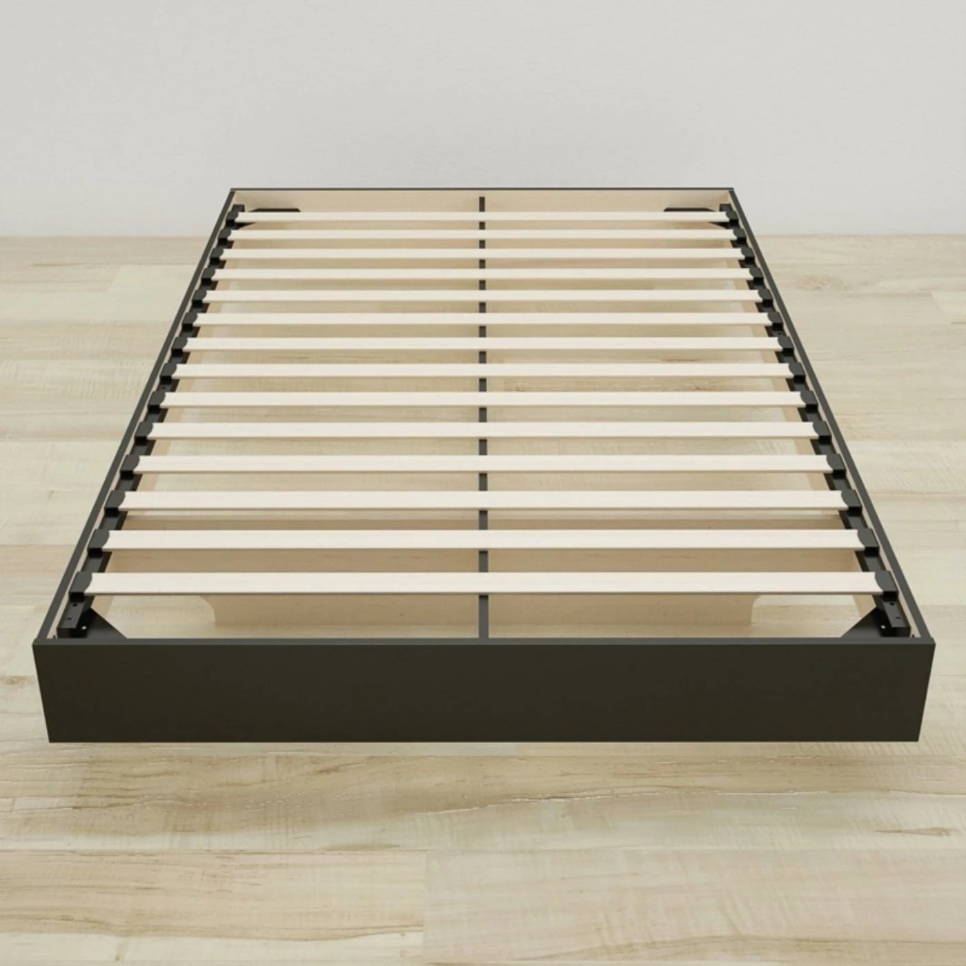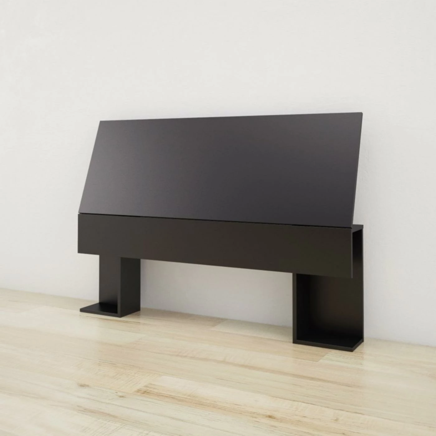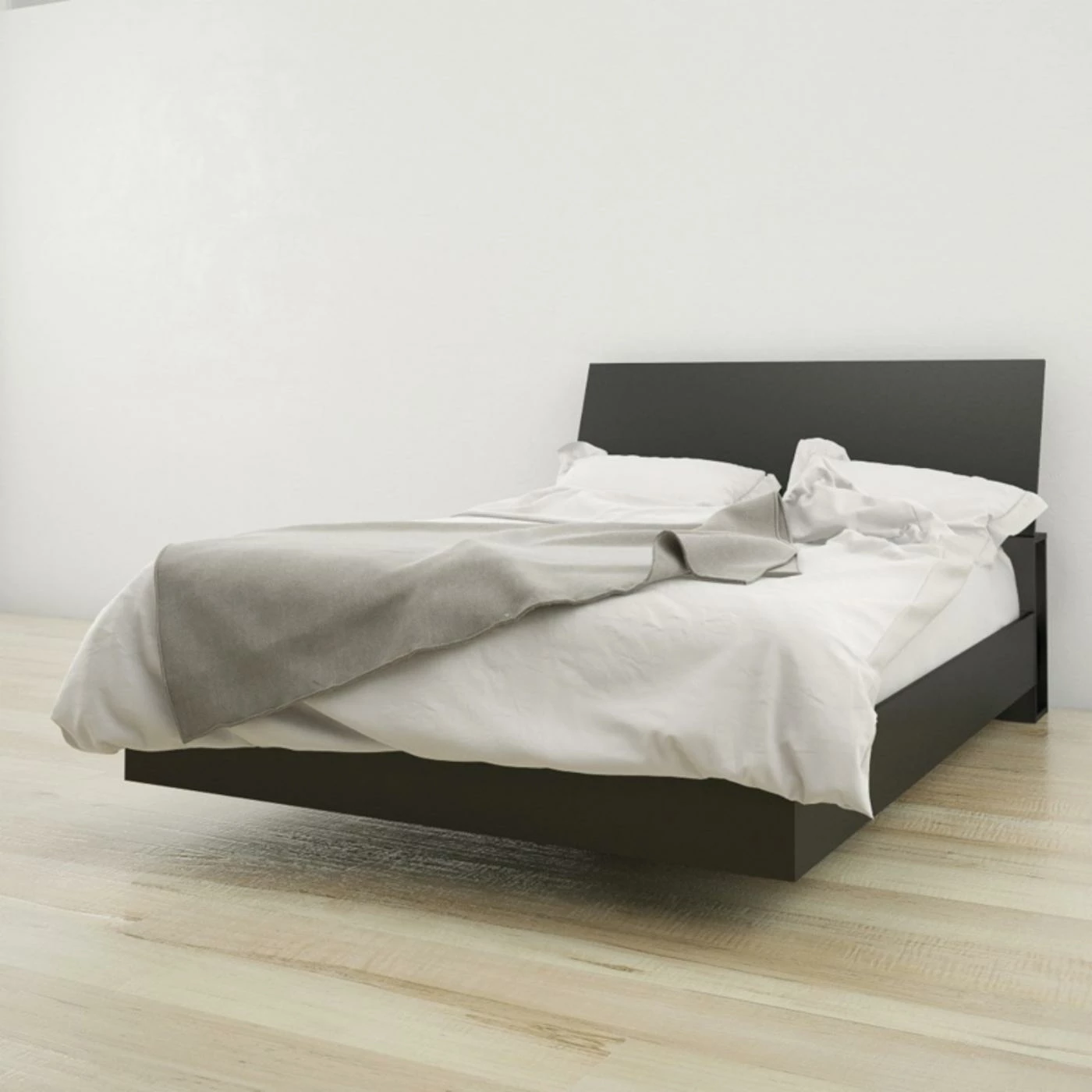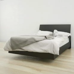 Featuring an angled headboard, the Noir Headboard and Platform Bed has an airy, dreamy floating appearance. This platform bed is made with engineered wood in a black finish with a slatted headboard. The slat design eliminates the need for a box spring. Simply choose from available size options.