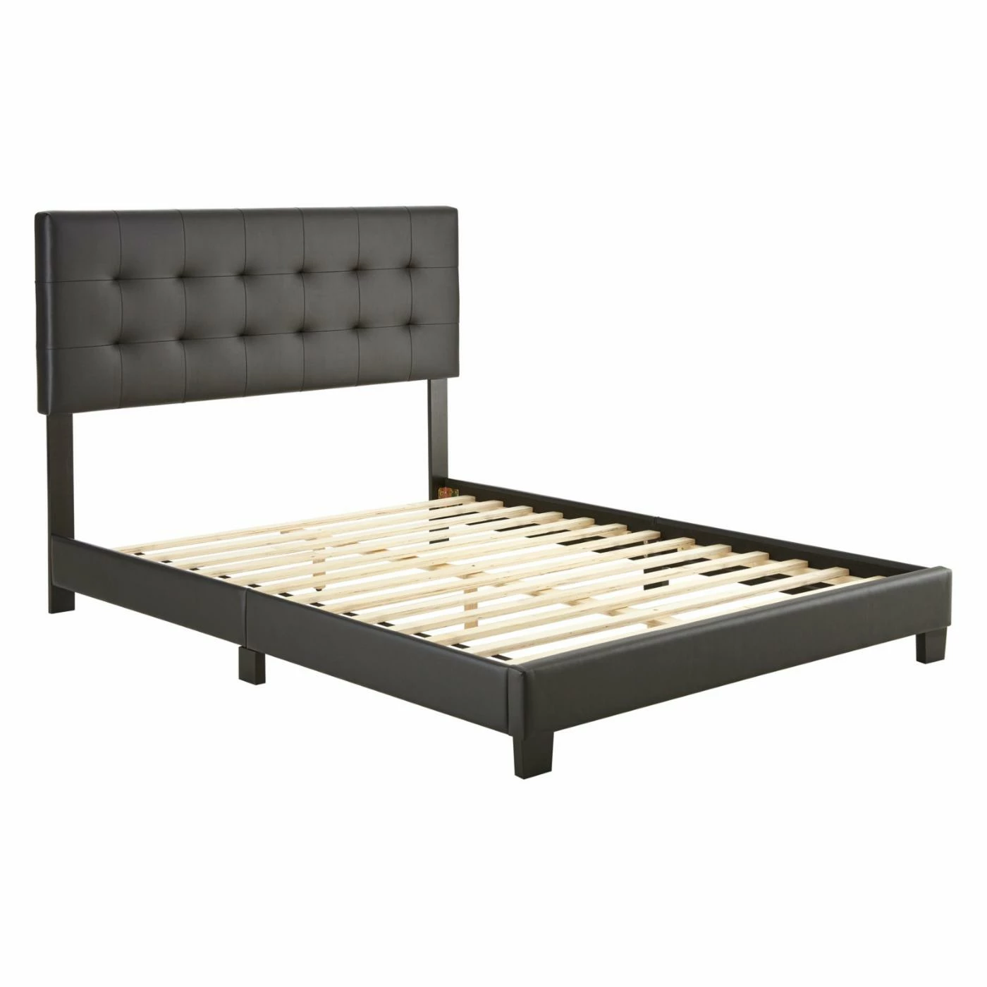 Give your bedroom a fresh new look with the stylish Pure Posture Brayden Platform Bed. This exciting piece is designed to be used without a foundation, eliminating the need for you to purchase a separate box spring. Using a pre-assembled, one-piece slat support system, this platform bed can accommodate up to 700 lbs. of combined weight. The slats improve air circulation as well, keeping your mattress cooler and reducing the risk of mold or mildew. The bed is expertly crafted from solid wood and features a generously padded headboard with lavish faux leather upholstery and fine tufted detailing. Choose from the available size and color options that best suit your room.