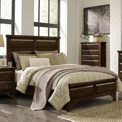 Transform your bedroom with the transitional style of the Steve Silver Co. Timber Storage Platform Bed. This platform bed requires no bed spring. It features a support system of slats to keep your mattress (not included) firmly in place for nightly comfort. Its construction from hardwood solids and acacia veneers is durable and crafted with precision. This bed includes two drawers at its foot that are perfect for stowing extra bedding or seasonal clothing items. With its rich chestnut finish, the bed promises to pair beautifully with existing dΓ©cor.