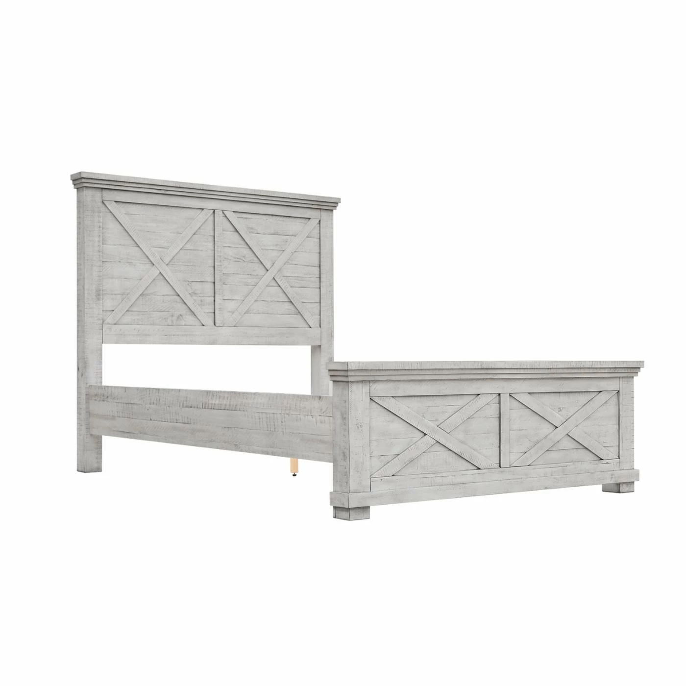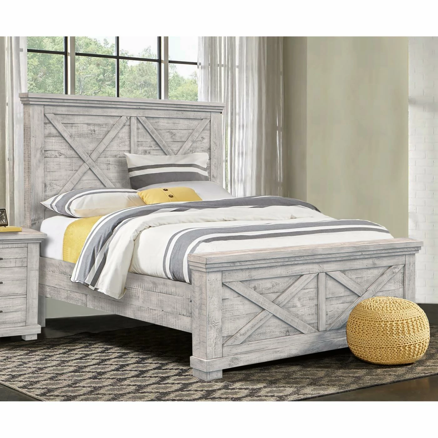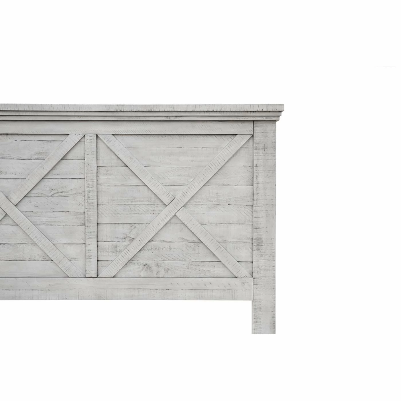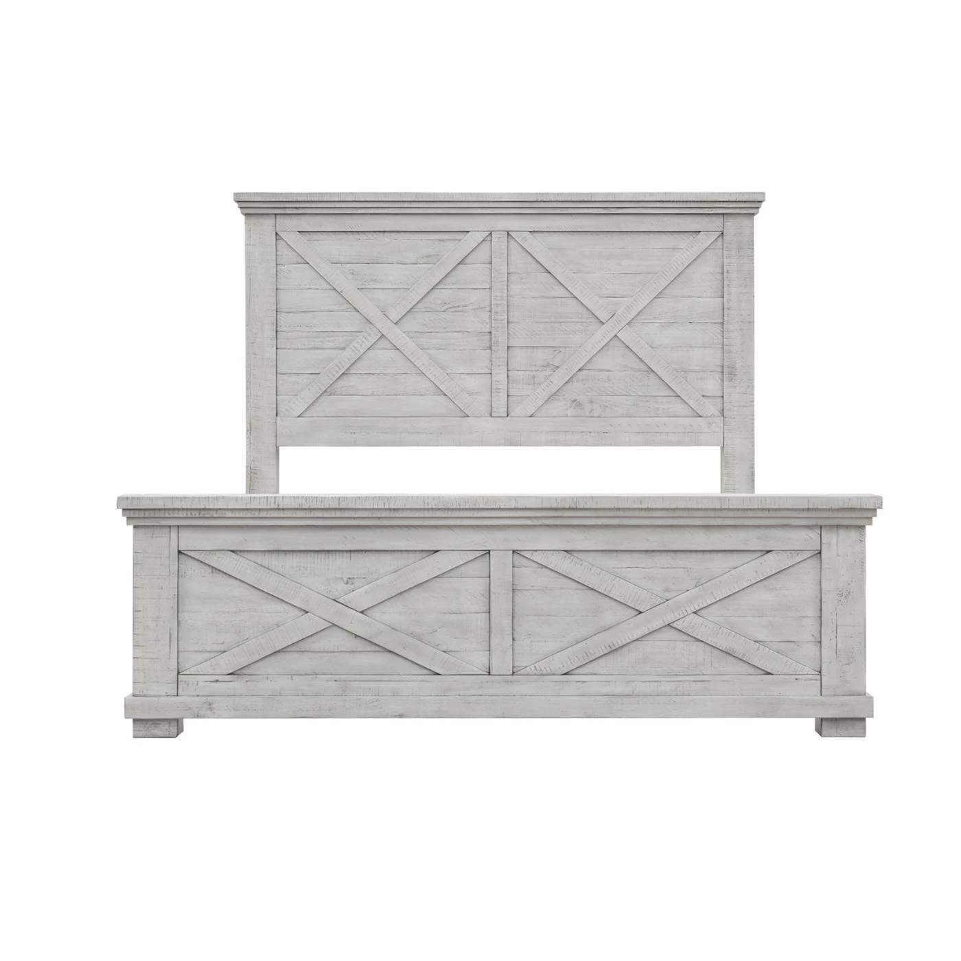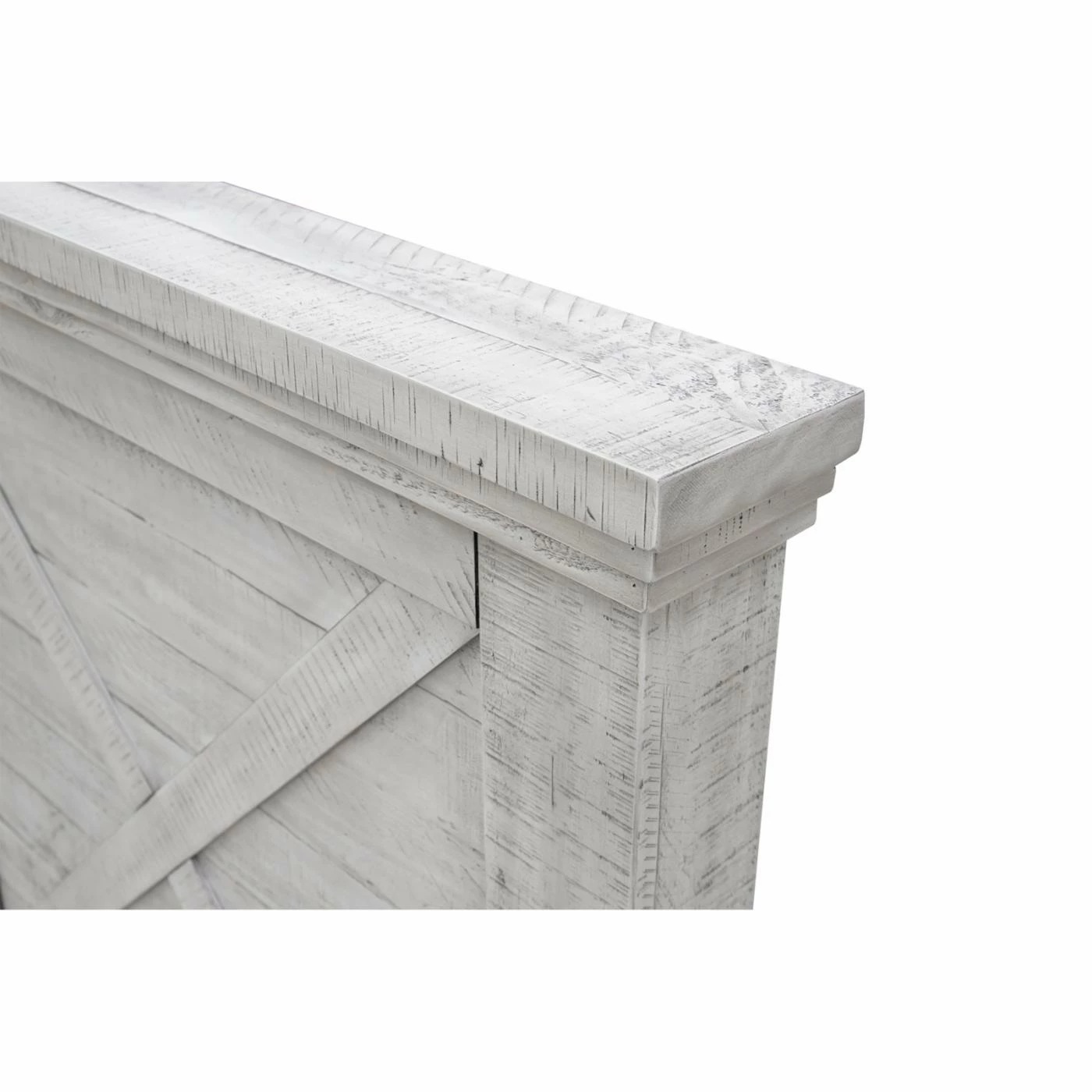 The Sunset Trading Crossing Barn Panel Bed showcases a crossed farmhouse style. Finished in distressed light gray, this panel bed is made of New Zealand pine wood and acacia wood. This bed blends seamlessly within a coastal, farmhouse, or country chic design.