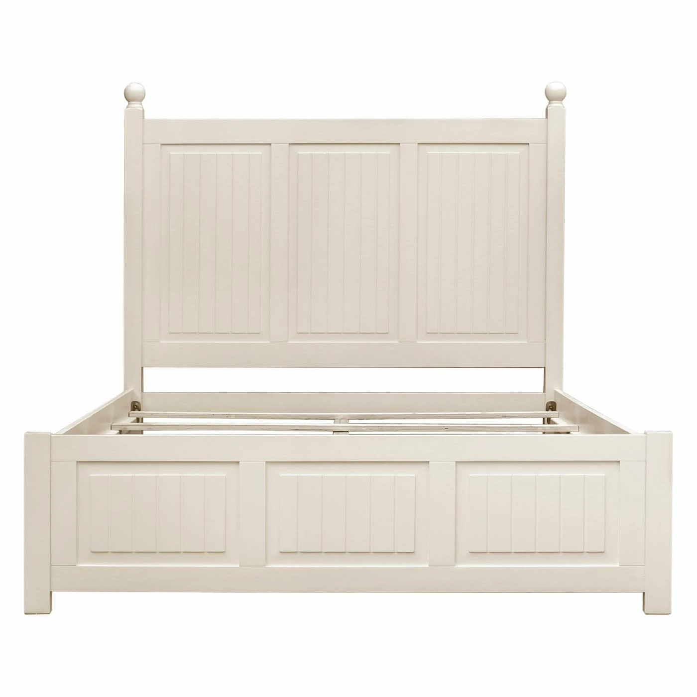 Wake up to island-charmed style every day with the Sunset Trading Ice Cream At The Beach Platform Bed. Airy and refreshing in antique white, this bed is crafted from premium hardwood and engineered wood treated with an eight-step finishing process and coated with a layer of smooth, protective lacquer. This eye-pleasing piece is accented with shiplap wainscot and beadboard paneling, signature to the seaside-centric Ice Cream at the Beach Collection.