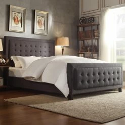Whether in the guest bedroom or your own bedroom, the Weston Home Fabrio Upholstered Panel Bed with Optional Bench is guaranteed to steal the show. Simply divine, this bed radiates flowing elegance from the top of the rectangular headboard to the tip of the tapered legs. A balance between light and dark is both eye-catching and neutral enough to play with color. With a plush, lined headboard and shiny detailing, youβll never want to take your eyes off this exquisite bed. The dark brown metal frame with Champagne-colored metal accents and beige linen-like upholstery give the Weston Home Fabrio Upholstered Bed a classic style with a touch of glam.
