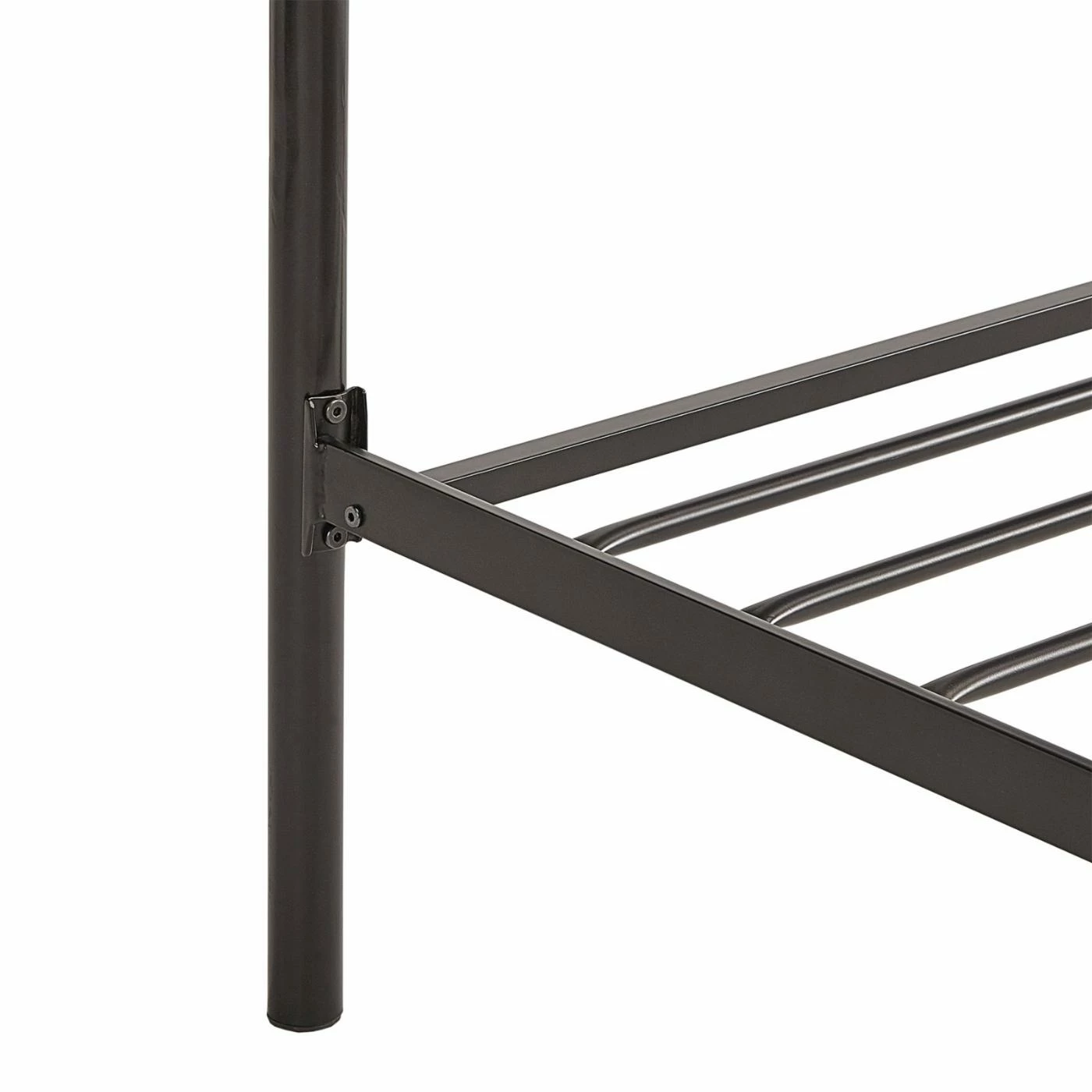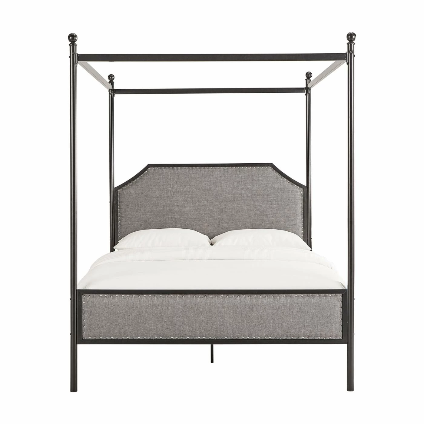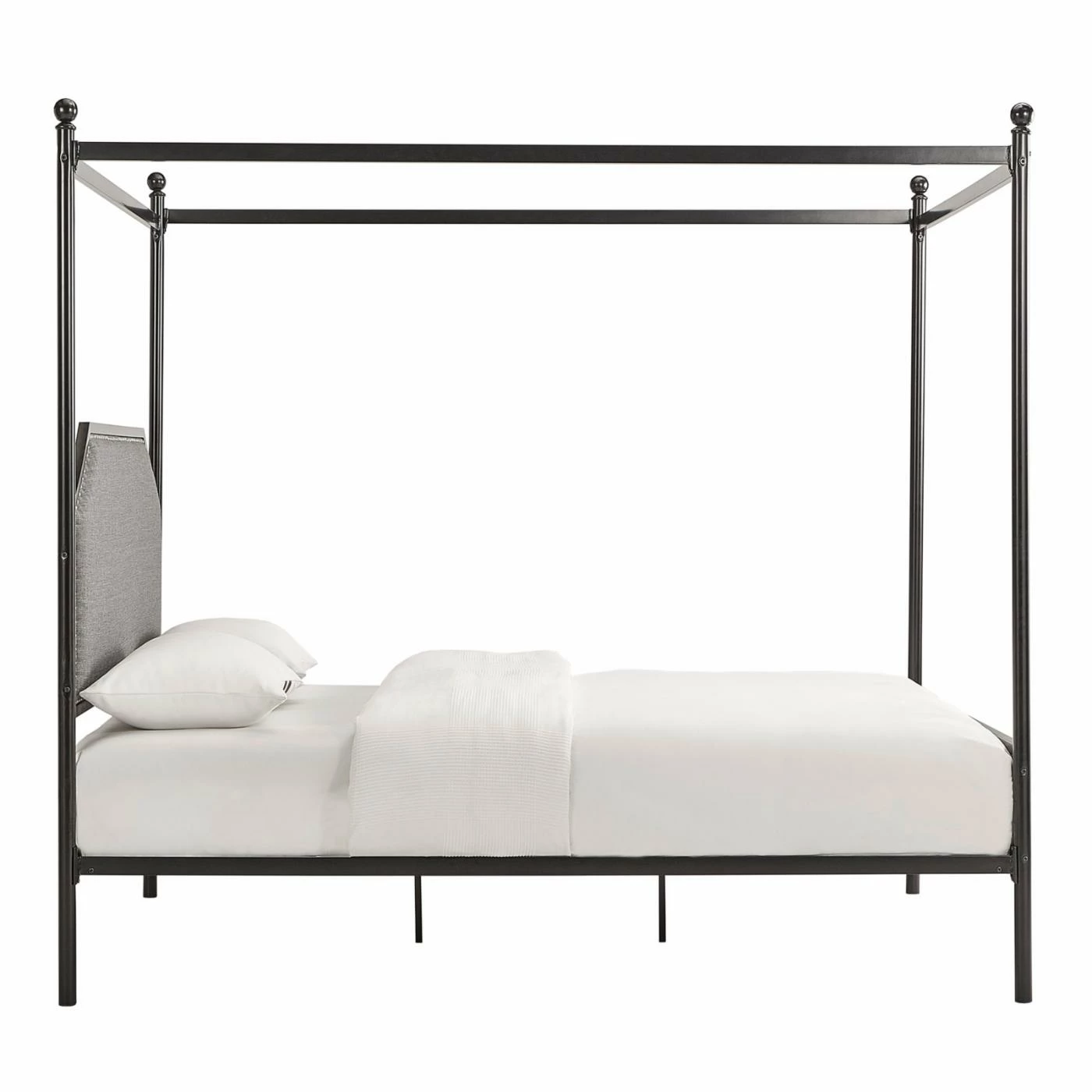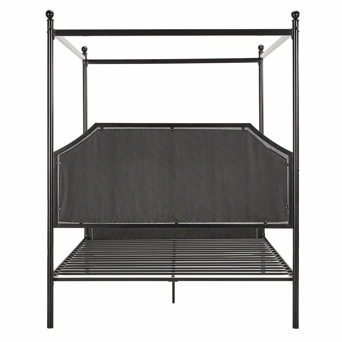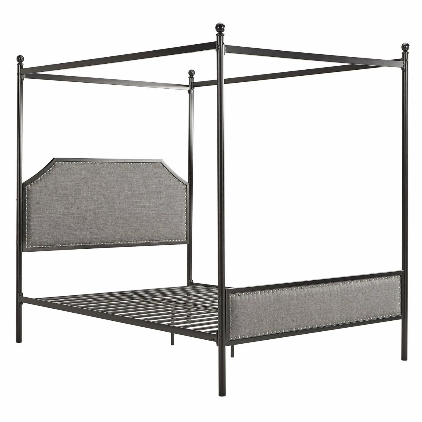 Add some regal flare to your bedroom with the Weston Home Metal Canopy Platform Bed With Upholstered Headboard and Footboard. This queen-sized bed includes an upholstered headboard and footboard with nailhead trim detail. The upholstered headboard is padded, which adds a nice contrast to the black metal bedframe. Since it is a platform bed, you do not need to get a box spring.